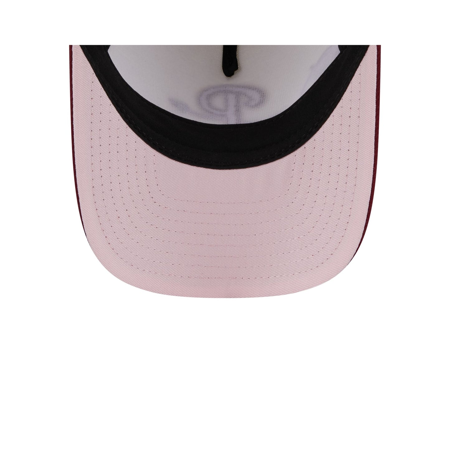 The Philadelphia Phillies Cherub 9FORTY M-Crown A-Frame Snapback features an embroidered Phillies logo and cherub angel at the front panels with a snapback closure at the rear and a pink undervisor.