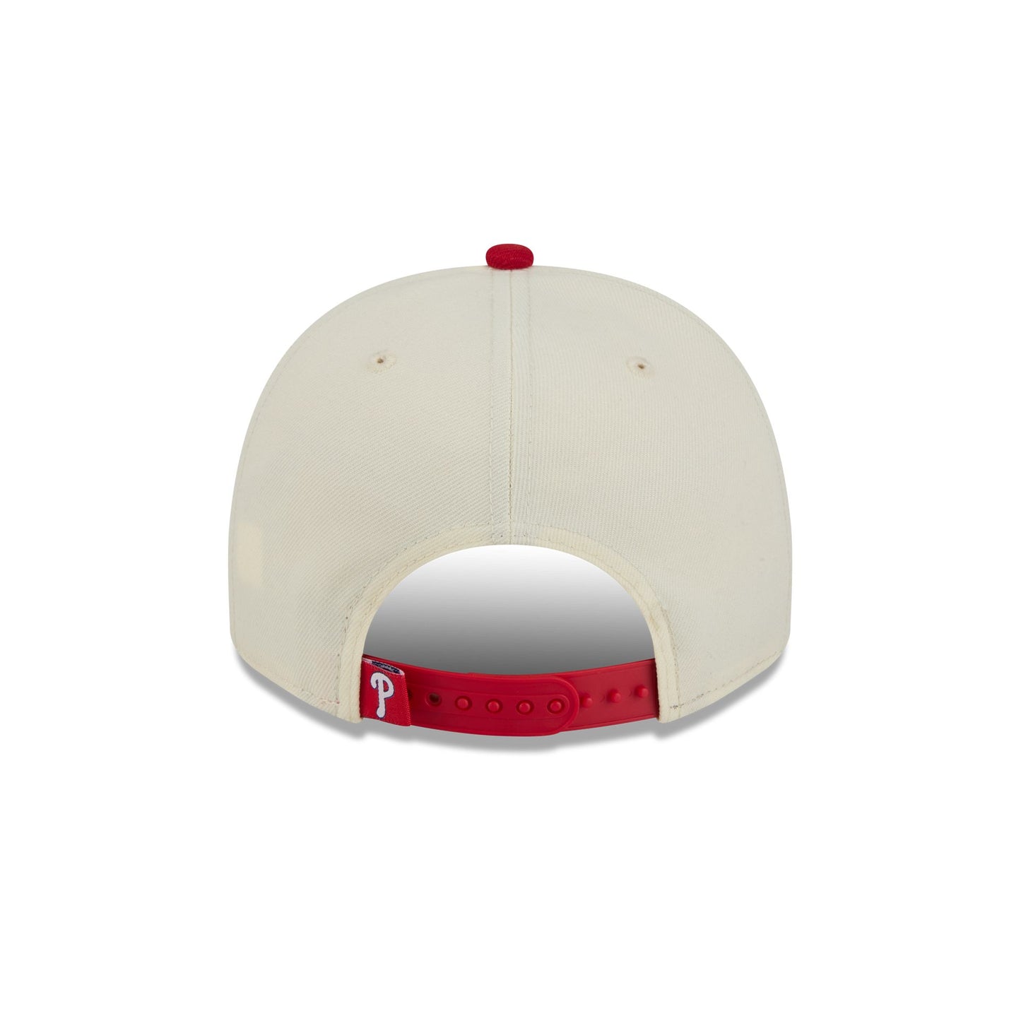 The Philadelphia Phillies Chrome White Classic 9FIFTY A-Frame Snapback features an embroidered Phillies graphic at the front panels with an adjustable snapback closure at the rear and a green undervisor.