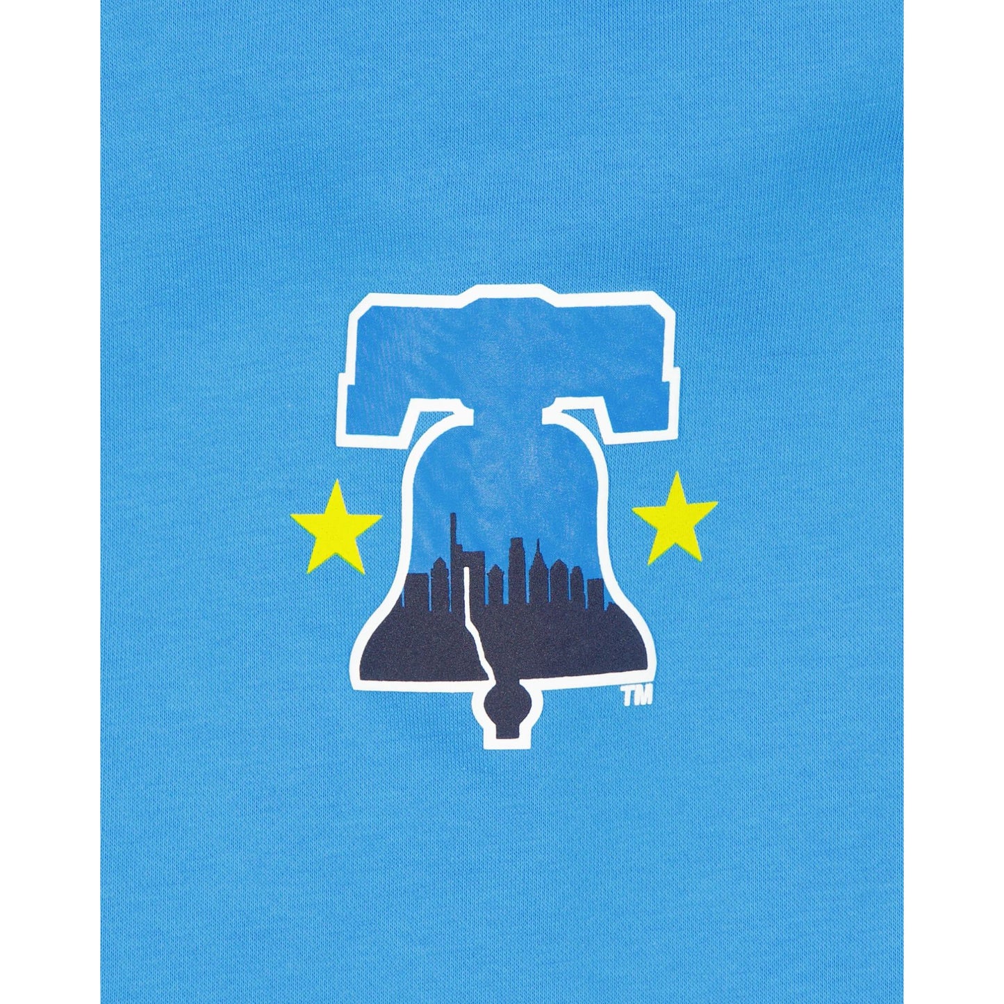 Jersey inspired, city connected. The Philadelphia Phillies City Connect Blue Hoodie features a screen-printed Phillies wordmark at the front with a team logo at the left sleeve.