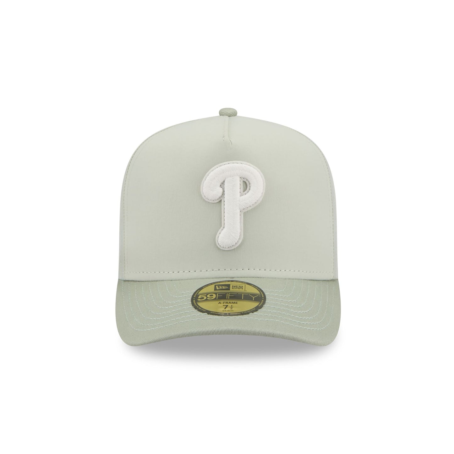 The Philadelphia Phillies Crinkle 59FIFTY A-Frame Fitted Cap features an embroidered Phillies logo at the front panels with a nylon fabrication throughout and the MLB Batterman logo at the rear.