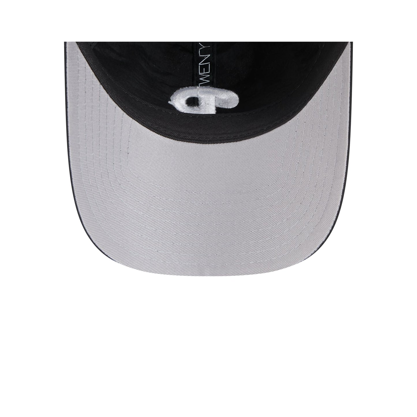 The Philadelphia Phillies Everyday Nylon Black 9TWENTY Adjustable Cap features an embroidered Phillies logo at the front panels with an adjustable strapback closure at the rear and a gray undervisor.