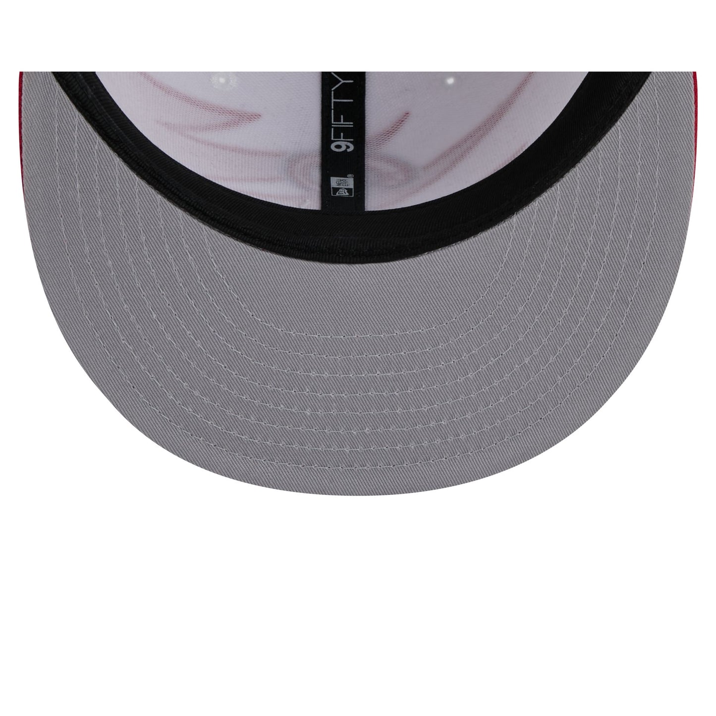 The Philadelphia Phillies Jagged 9FIFTY Snapback features an embroidered Phillies logo at the front panels with a jagged pattern fabrication throughout the cap. Additional details include a snapback closure at the rear and a gray undervisor.