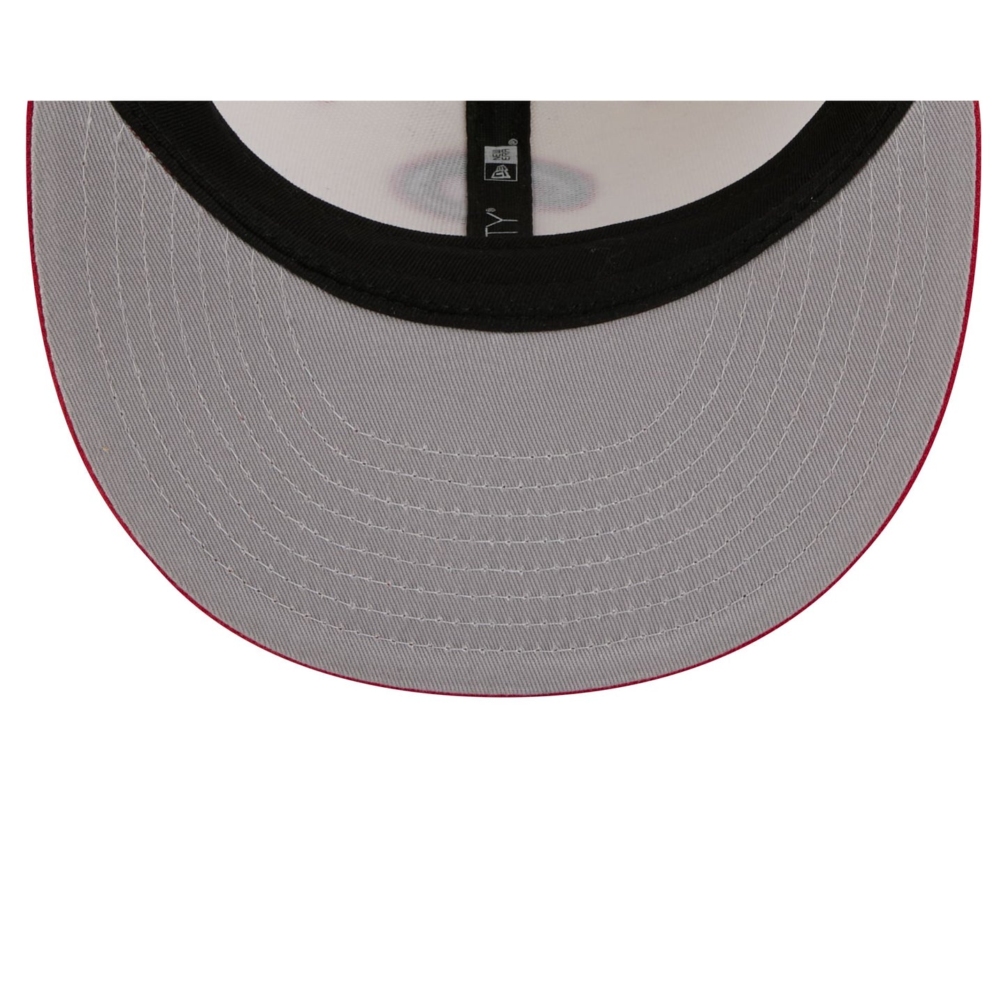 The Philadelphia Phillies Mascot Pin 9FIFTY Snapback features an embroidered Phillies logo at the front panels with a mascot New Era pin at the left-wear side and a patch at the right-wear side. Additional details include an adjustable snapback closure at the rear and a gray undervisor.