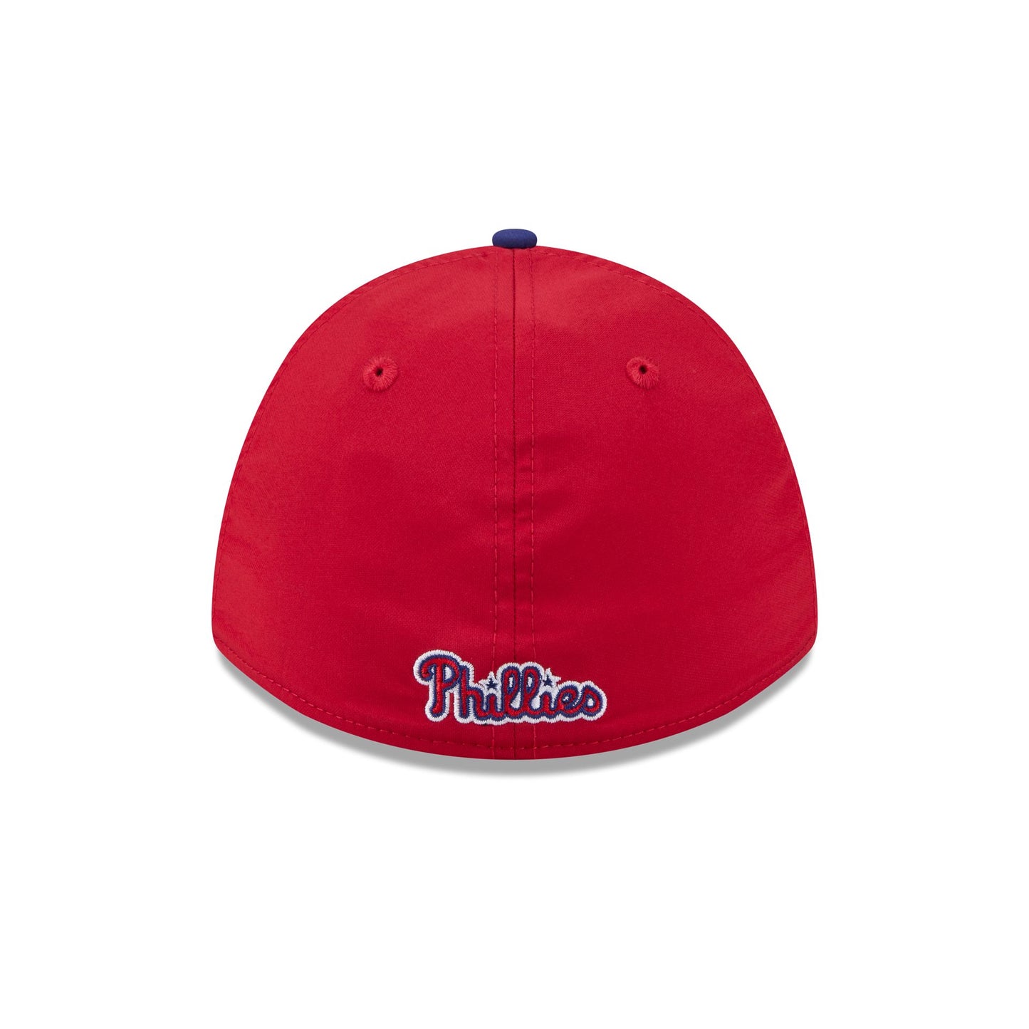 The Philadelphia Phillies Rope 39THIRTY M-Crown A-Frame Stretch Fit features an embroidered Phillies logo at the front panels with a rope at the visor. Additional details include a wordmark at the rear and a gray undervisor.