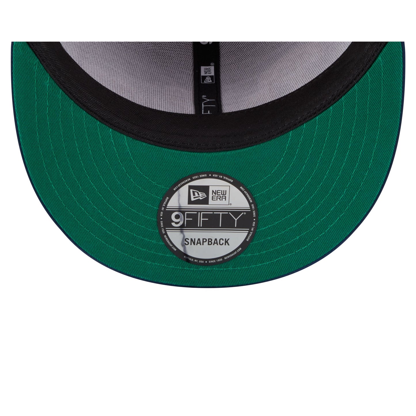 The Philadelphia Phillies Satin Pin 9FIFTY Snapback features an embroidered Phillies wordmark at the front panels against a satin fabrication throughout the cap and a logo at the right-wear side. Additional details include a New Era Pin at the front left panel a snapback closure at the rear, and a green undervisor.