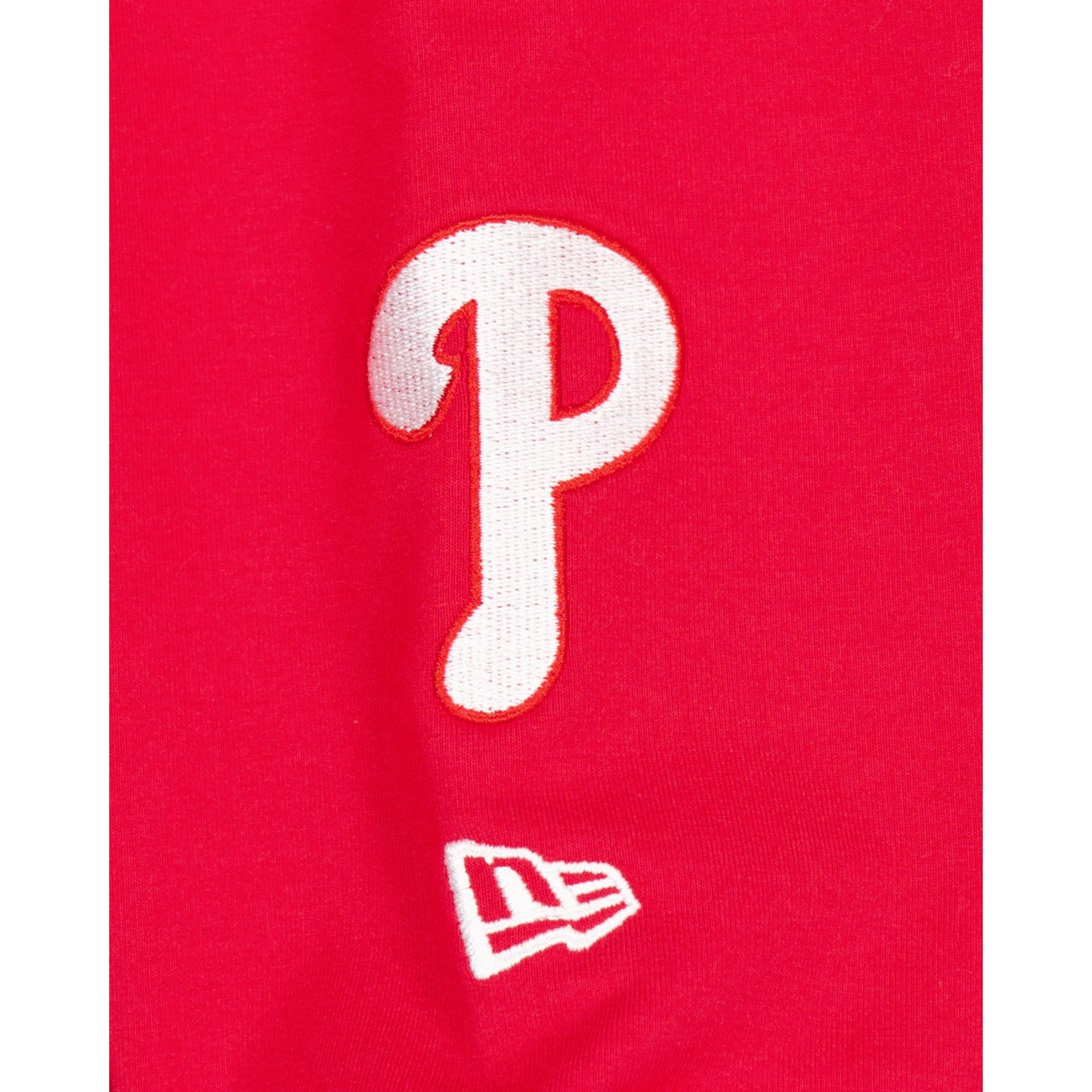 The Philadelphia Phillies Team Color Logo Select Hoodie features a zig zag stitched twill applique Phillies wordmark at the chest with a New Era Cap jock tag at the kangaroo pocket and an embroidered team logo at the left sleeve.