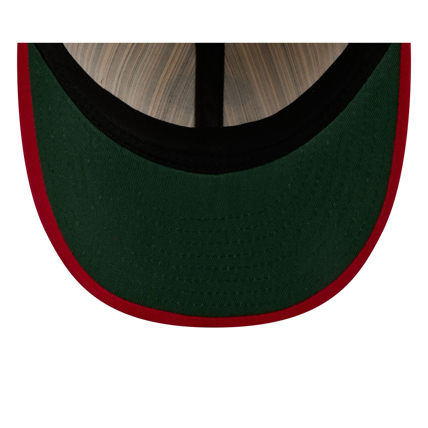 The Philadelphia Phillies Three Looms Americana Herringbone Retro Crown 9FIFTY Adjustable Phillies logo at the front panels with an adjustable buckle closure at the rear. Additional details include an embroidered American flag patch at the right-wear side with a team color visor and a green undervisor.