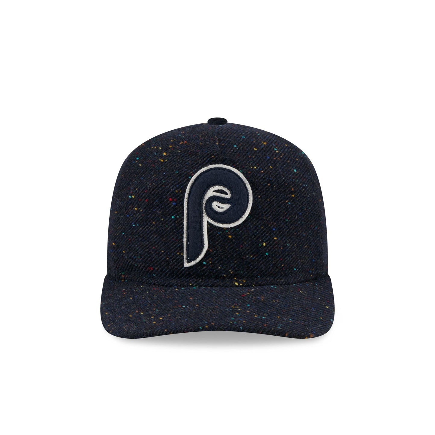 The Philadelphia Phillies Three Looms Speckled Wool 19TWENTY Adjustable Phillies Cooperstown patch at the front with an adjustable buckle closure at the rear and a green undervisor.