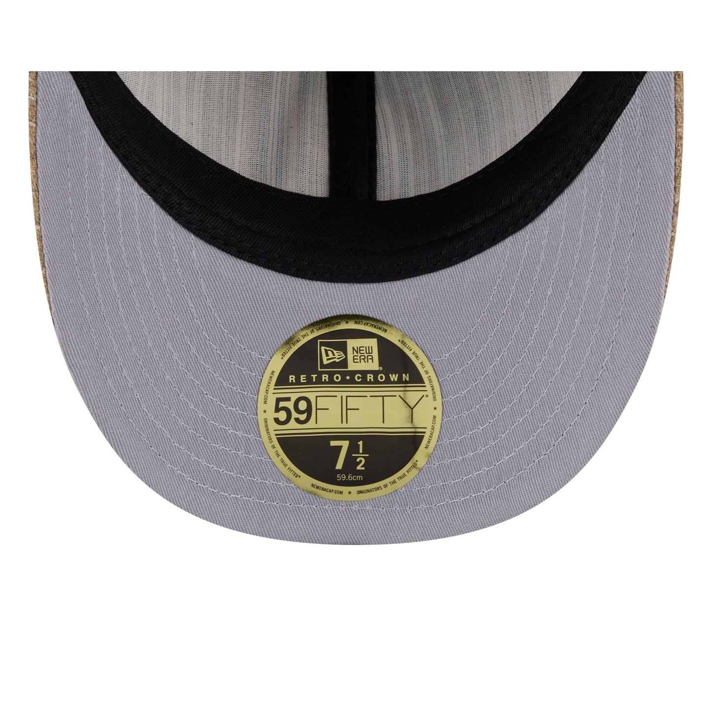 The Philadelphia Phillies Three Looms Vintage Tweed Retro Crown Pre-Curved 59FIFTY Fitted features an embroidered Phillies logo at the front panels with a matching MLB Batterman logo at the rear, a pre-curved tan visor, and a gray undervisor.