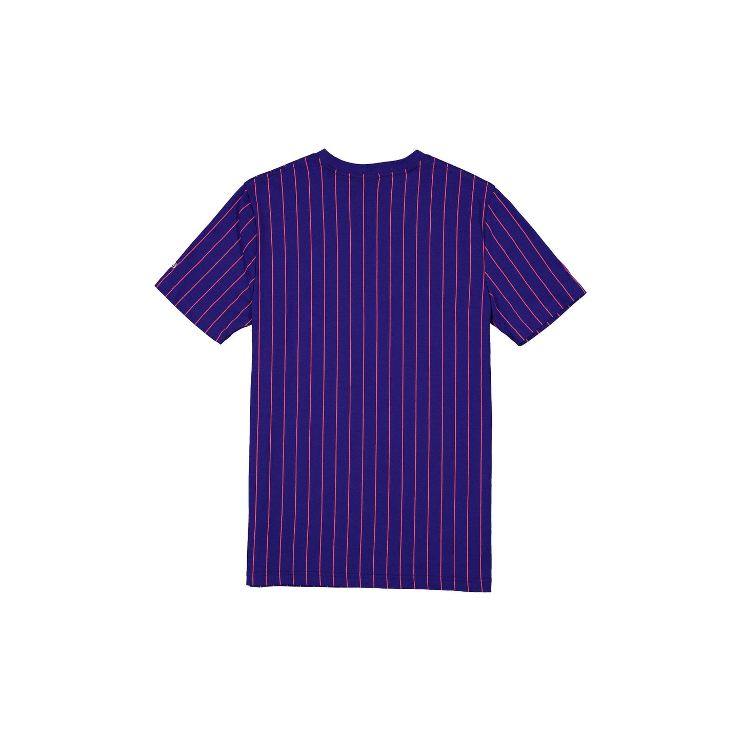 The Philadelphia Phillies Throwback Pinstripe T-Shirt features an embroidered Phillies logo and wordmark at the front with a New Era jock tag at the left hip.