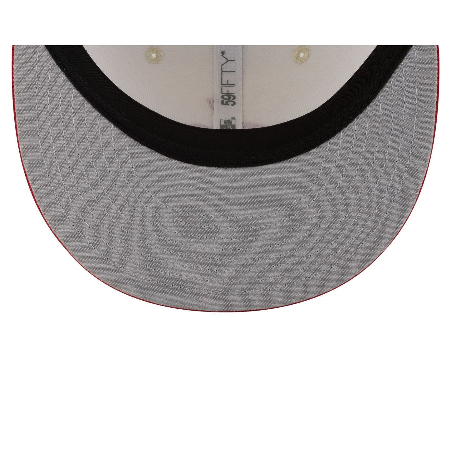 The Philadelphia Phillies Upside Down 59FIFTY Fitted Cap features an embroidered Phillies upside down logo at the front panels with the MLB Batterman logo at the rear and a gray undervisor.