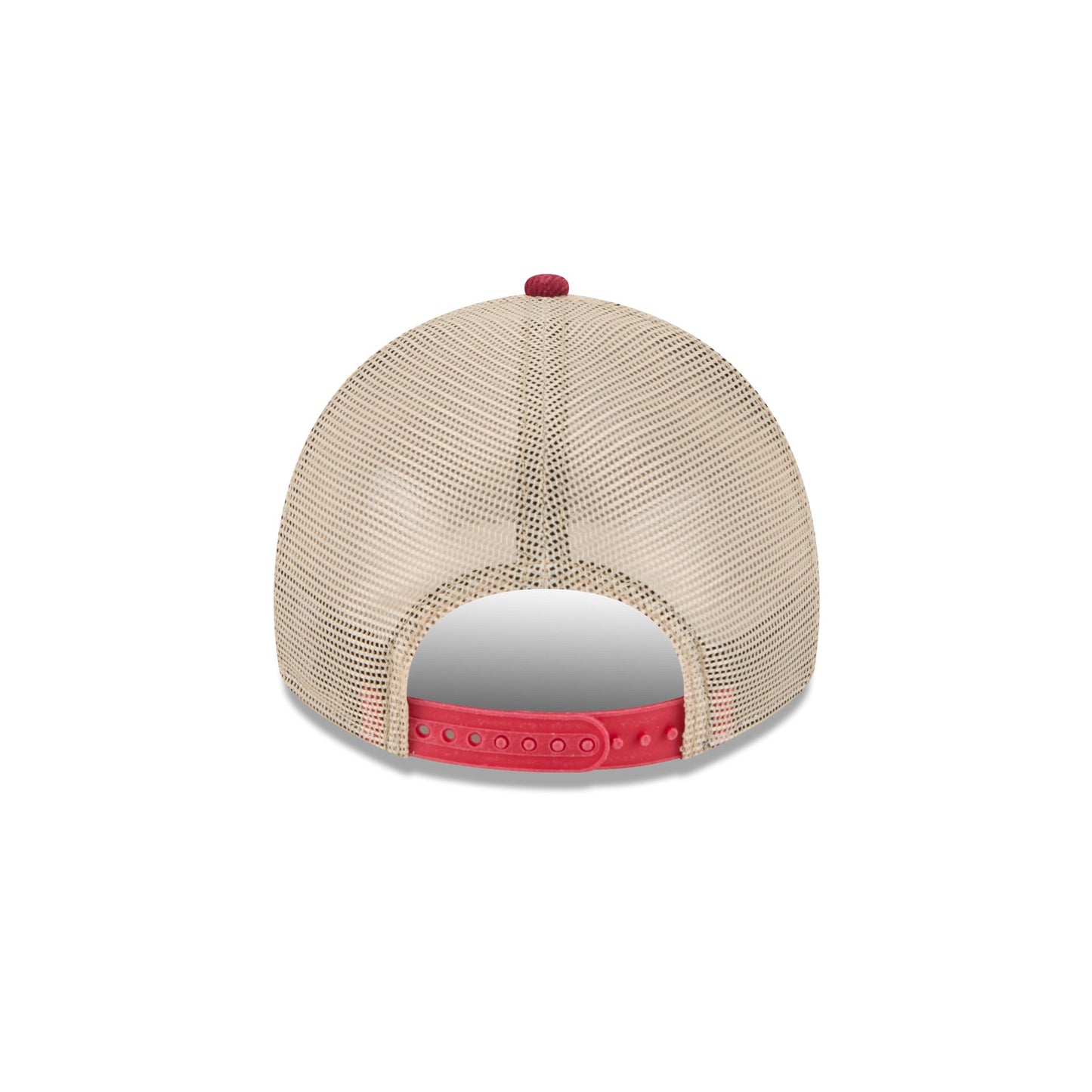 The Philadelphia Phillies Vintage Landscape 9TWENTY A-Frame Trucker features an embroidered Phillies Vintage Landscape patch at the front panels with a Cooperstown team logo at the right-wear side. Additional details include an adjustable snapback closure at the rear and a gray undervisor.