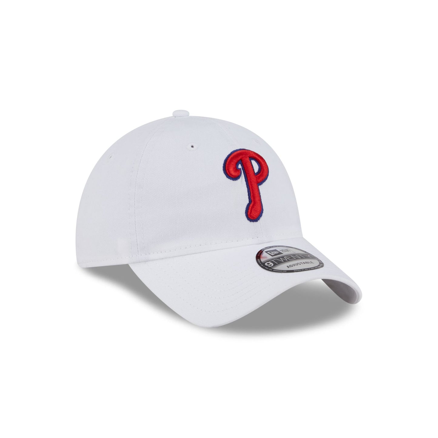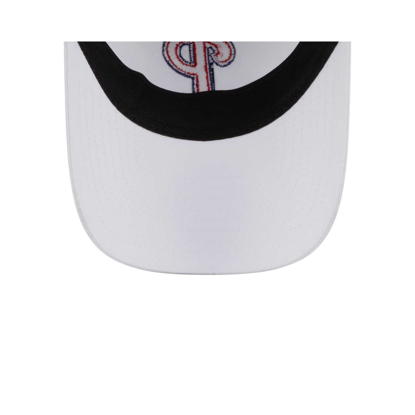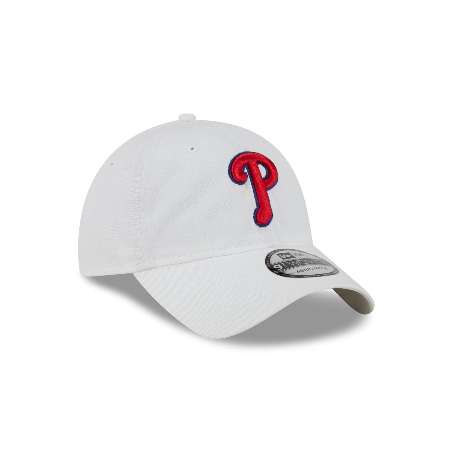 The Philadelphia Phillies White 9TWENTY Adjustable Cap features an embroidered Phillies logo at the front panel with a matching woven team logo tag at an adjustable D-Ring closure at the rear.