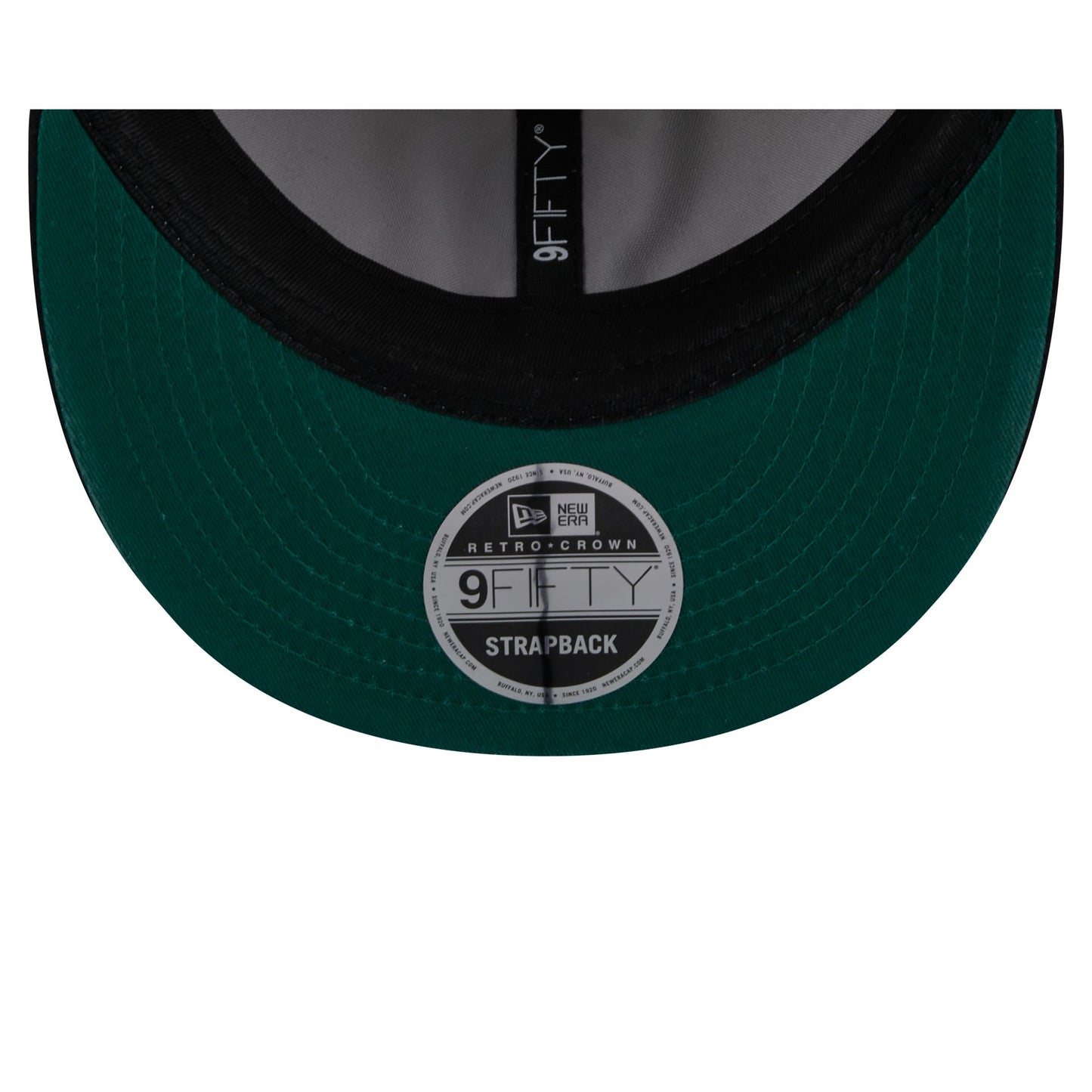 The Philadelphia Stars Tri Color Retro Crown 9FIFTY Snapback features an embroidered Stars tricolor logo at the front panels with a Negro Leagues Baseball Museum patch at the right-wear side. Additional details include an adjustable leather closure at the rear and a green undervisor.
