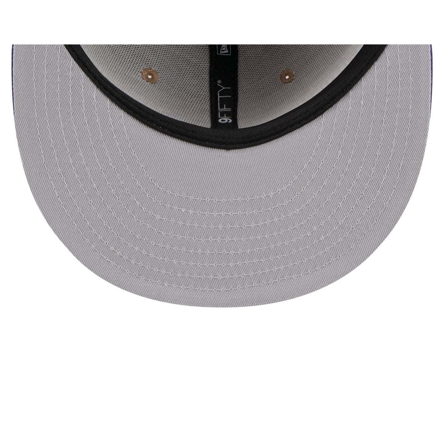 The Phoenix Suns 2024 Draft 9FIFTY Snapback features an embroidered Suns logo and team wordmark at the front panels with the official NBA Logoman above a snapback closure at the rear and a gray undervisor.