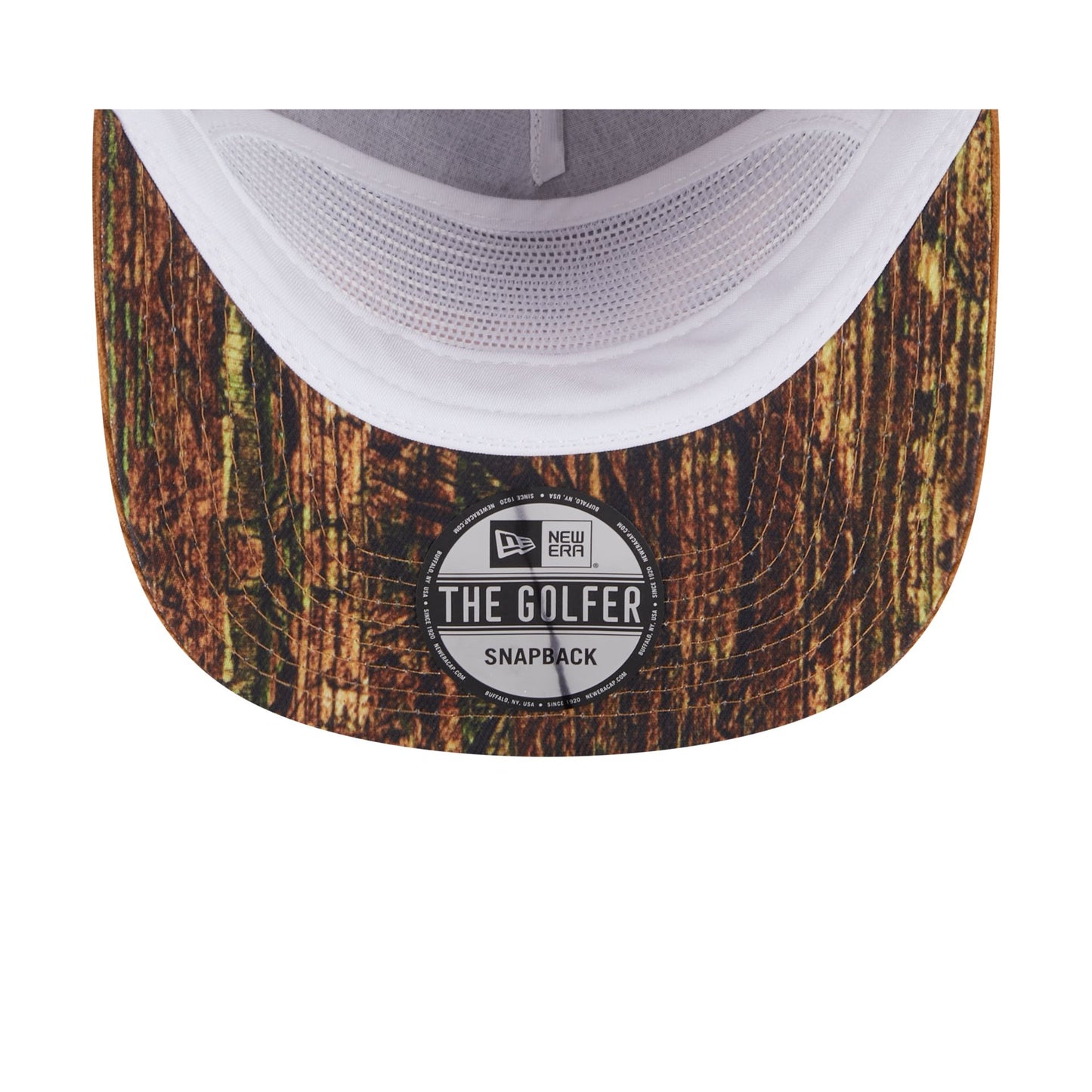 The Phoenix Suns 2025 All-Star Game Fan Pack Corduroy Golfer features an embroidered Suns script wordmark and sneaker pin at the front panels against a corduroy fabrication. Additional details include a rope at the visor, a team tag on a snapback closure at the rear, and a camo undervisor.
