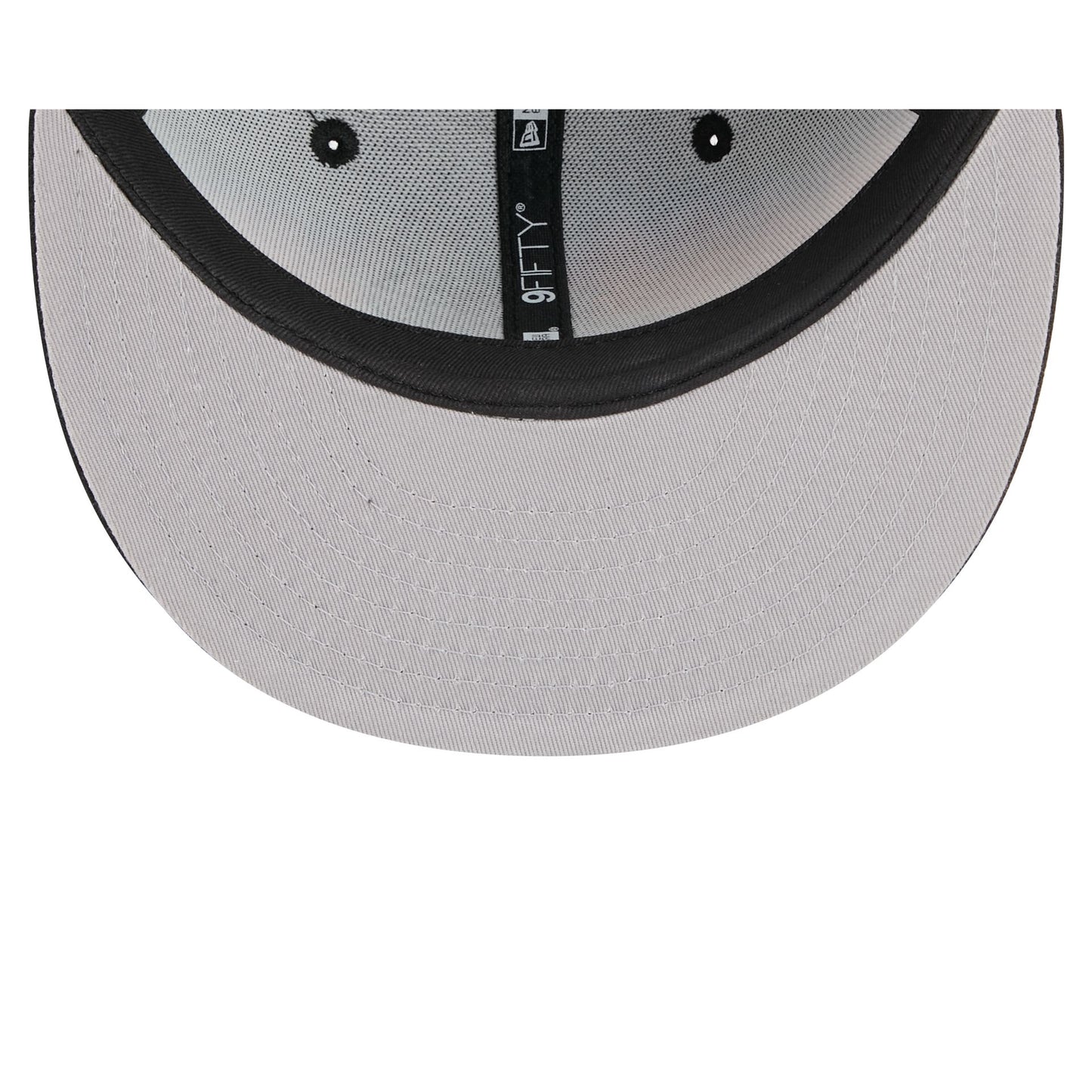 The Phoenix Suns 2025 City Edition 9FIFTY Snapback features an embroidered Suns City Edition logo at the front panels with a logo at the right-wear side. Additional details include the NBA Logoman above an adjustable snapback closure at the rear and a gray undervisor.
