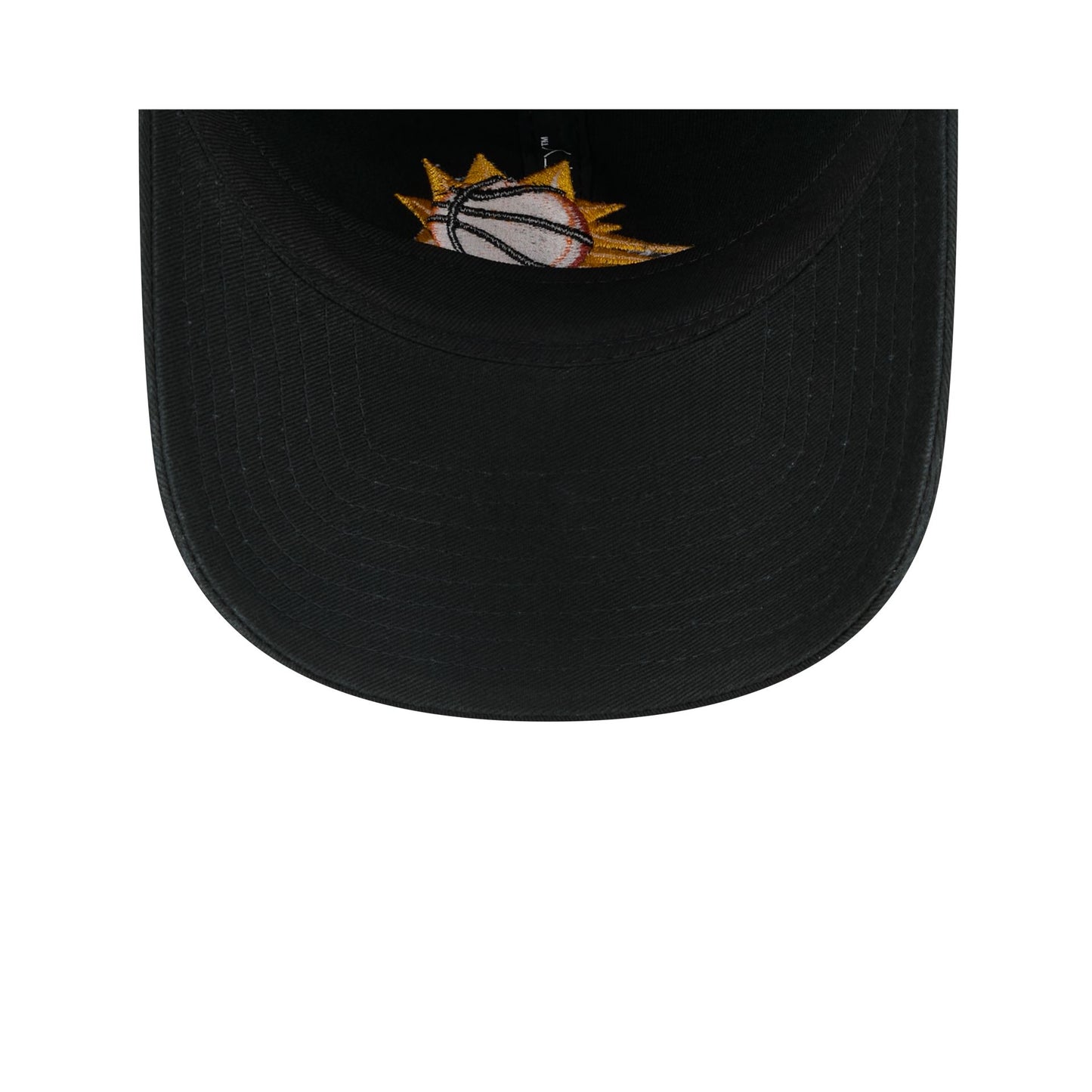 The Phoenix Suns Black 9TWENTY Adjustable Cap features an embroidered Suns logo at the front panels with a matching woven team logo tag at the adjustable D-Ring closure at the rear.