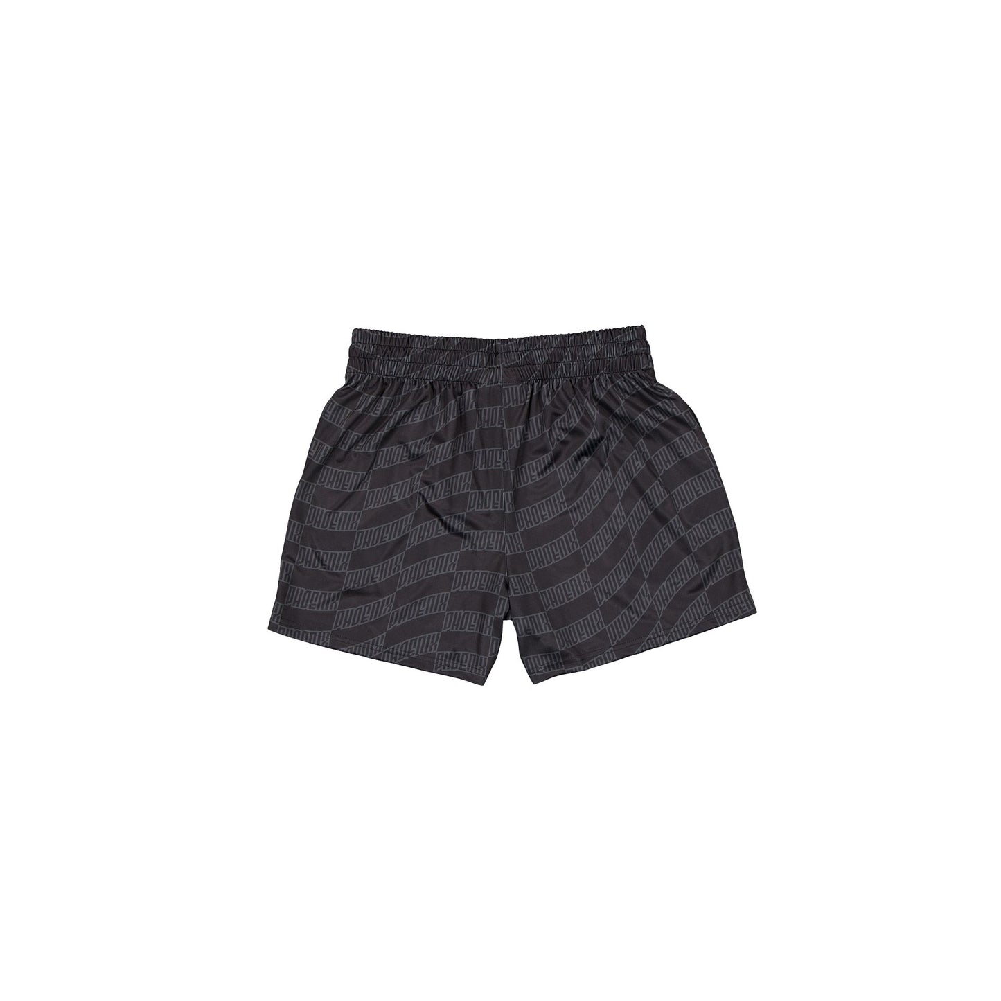 The Phoenix Suns Black All-Over-Print Shorts feature a screen-printed Suns logo at the right leg with pockets and adjustable drawstrings.
