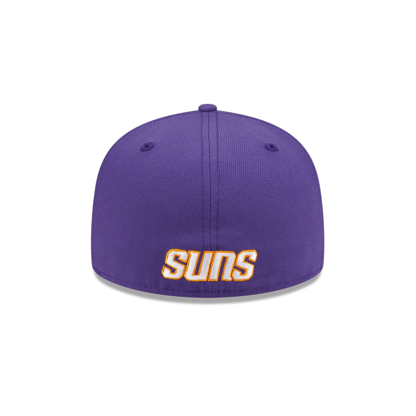 The Phoenix Suns Deceptor 59FIFTY Fitted Cap features an embroidered Suns deceptive logo at the front panels with a team logo at the right-wear side. Additional details include a wordmark at the rear, and a gray undervisor.