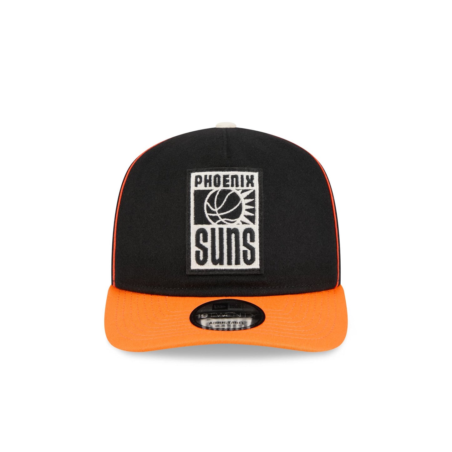The Phoenix Suns Felt Logo 19TWENTY Adjustable Cap features an embroidered Suns Hardwood Classics felt logo at the front felt panels with the NBA Logoman at the right-wear side. Additional details include an adjustable snapback closure at the rear and a green undervisor.