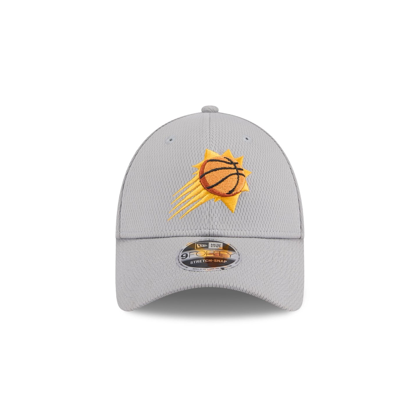 The Phoenix Suns Gray 9FORTY Stretch Snap Cap features an embroidered Suns logo at the front panels with a snapback closure at the rear and a gray undervisor.