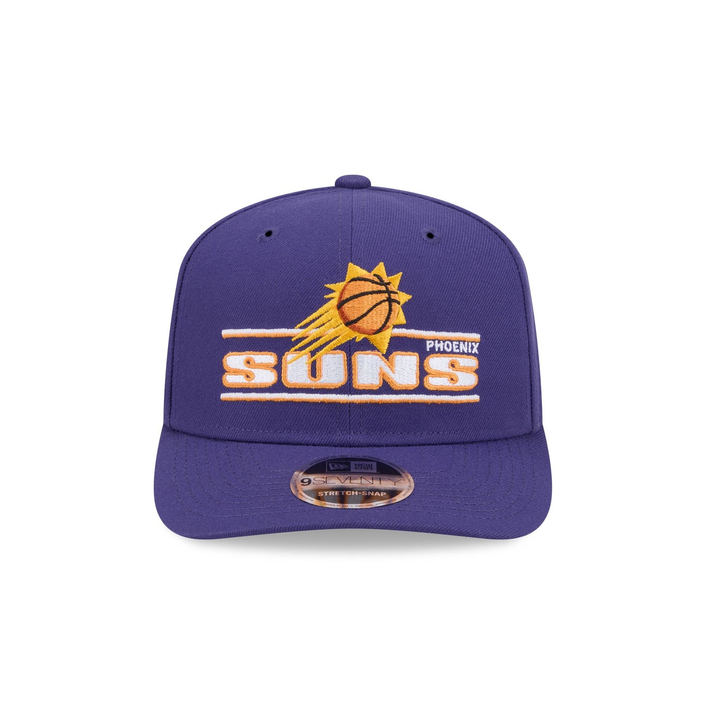 The Phoenix Suns Stated 9SEVENTY Stretch-Snap features an embroidered Suns graphic a the front panels with an adjustable stretch-snap closure at the rear and a gray undervisor.