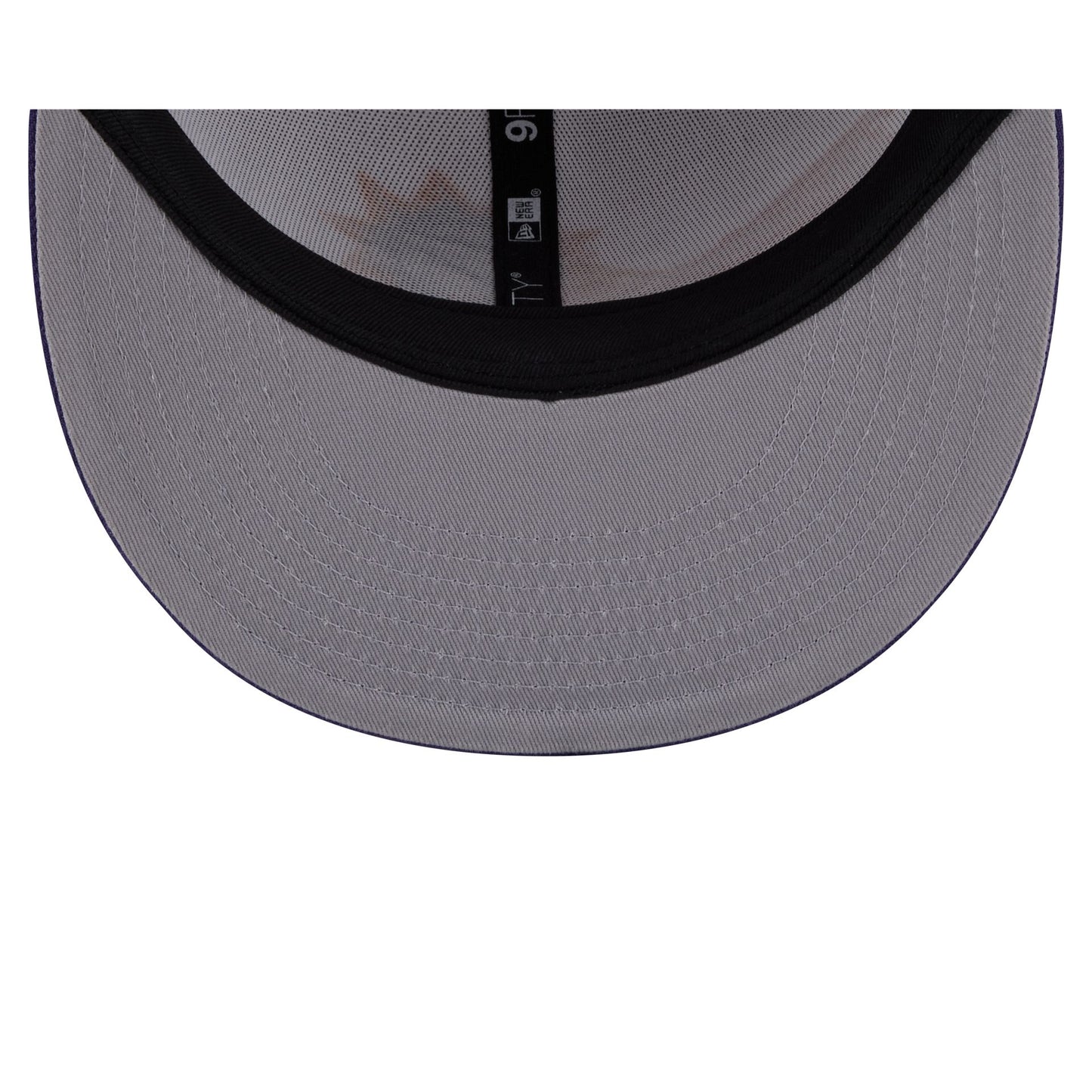The Phoenix Suns Swept 9FIFTY Snapback features an embroidered Suns logo at the front panels with a brushstroke wordmark graphic at the right-wear side. Additional details include an adjustable snapback closure at the rear and a gray undervisor.