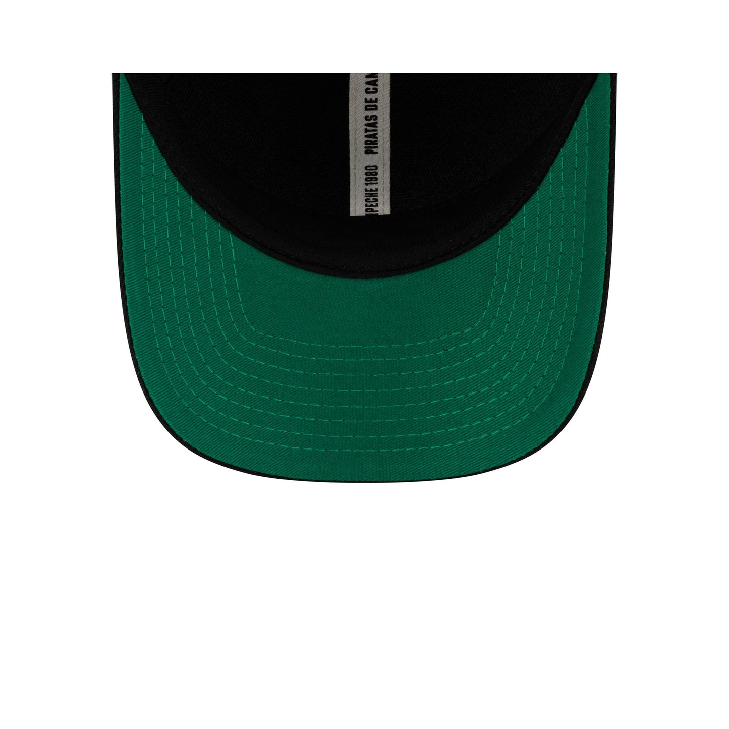 The Piratas de Campeche Retro 9FORTY M-Crown Snapback features an embroidered Piratas retro logo at the front panels with a 100th Anniversary LMB logo above an adjustable snapback closure at the rear.