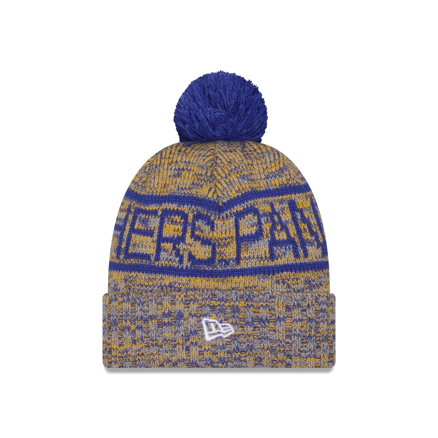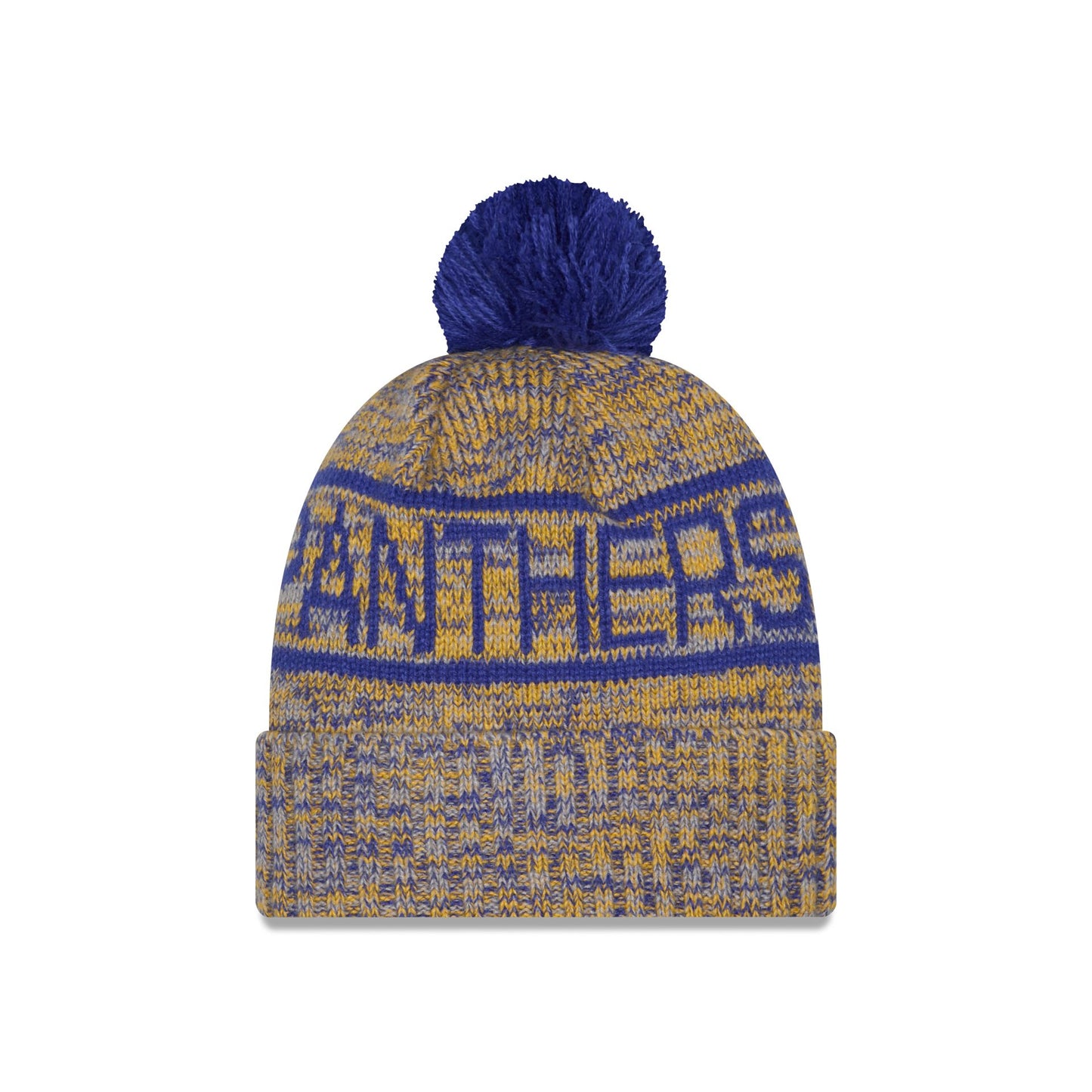 The Pittsburgh Panthers Cold Weather Pom Knit features a sewn-down silicone Panthers logo patch at the front cuff with a New Era Flag at the left-wear side. Additional details include a team wordmark across the crown, a one-time removeable pom, and a fleece lining.