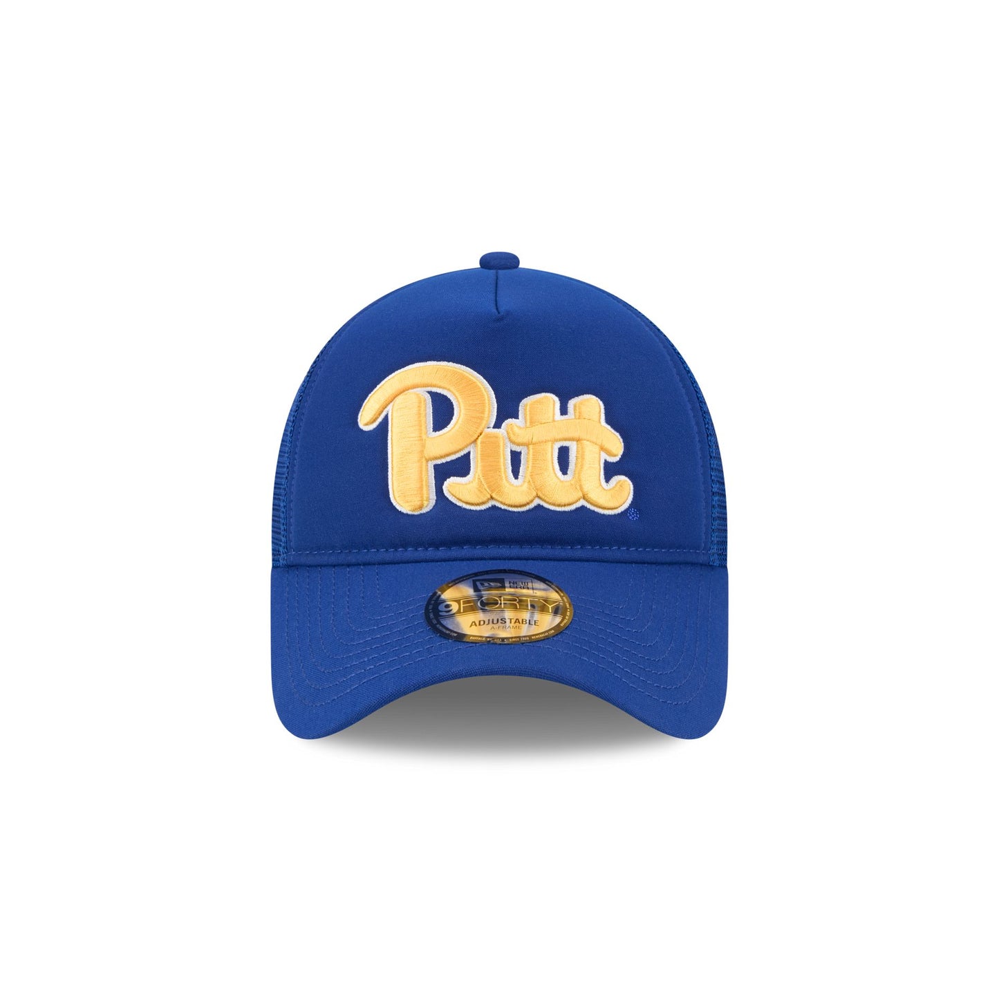 The Pittsburgh Panthers Go-To 9FORTY A-Frame Trucker features an embroidered Panthers logo at the front panels with a snapback closure at a mesh rear.
