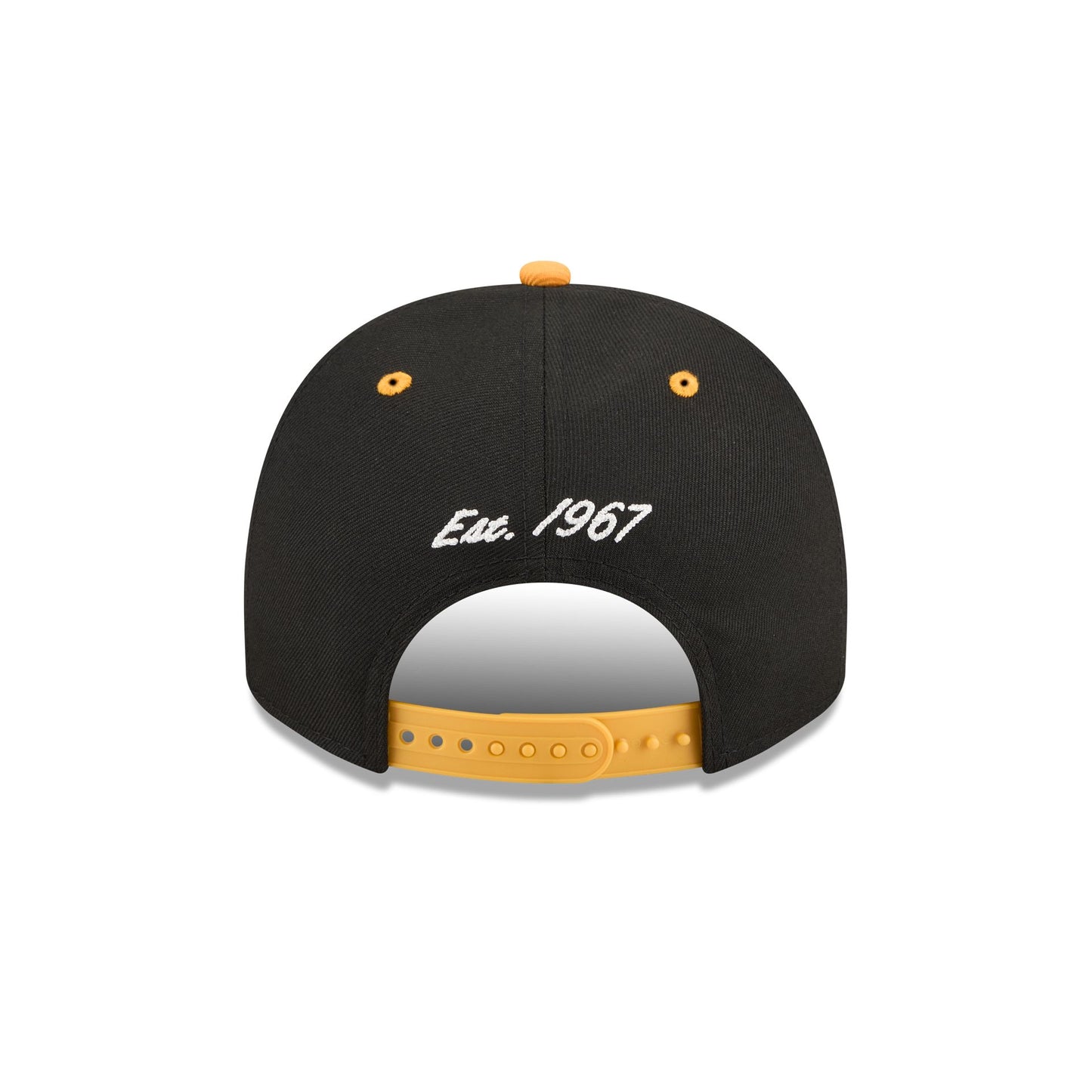 The Pittsburgh Penguins Arched 9FIFTY A-Frame Snapback features an embroidered Penguins arched graphic at the front panels with a team graphic at the right-wear side. Additional details include the establishment year above an adjustable snapback closure at the rear and a gray undervisor.