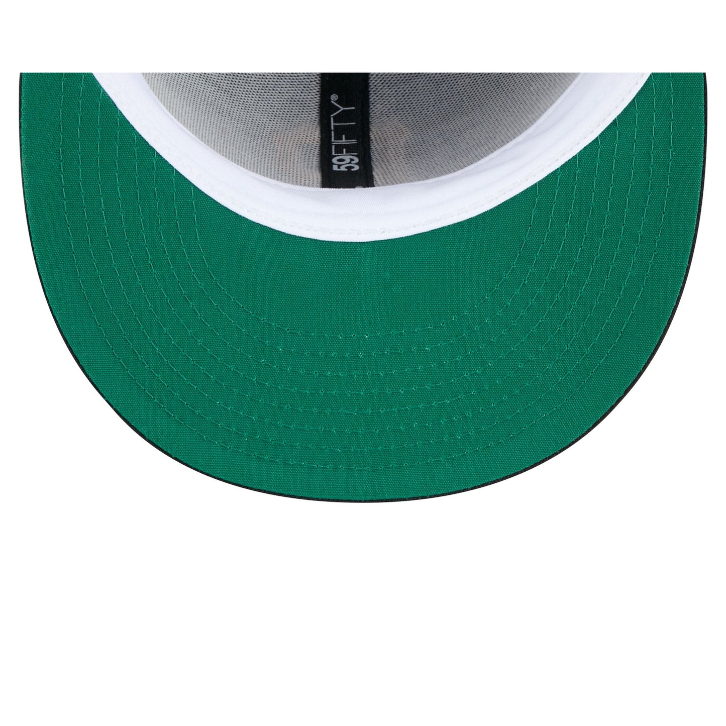 The Pittsburgh Pirates Hall of Fame 2025 59FIFTY Fitted Cap features an embroidered Pirates Cooperstown logo at the front panels with a matching MLB Batterman logo at the rear, a National Baseball Hall of Fame patch at the right-wear side, and a green undervisor.