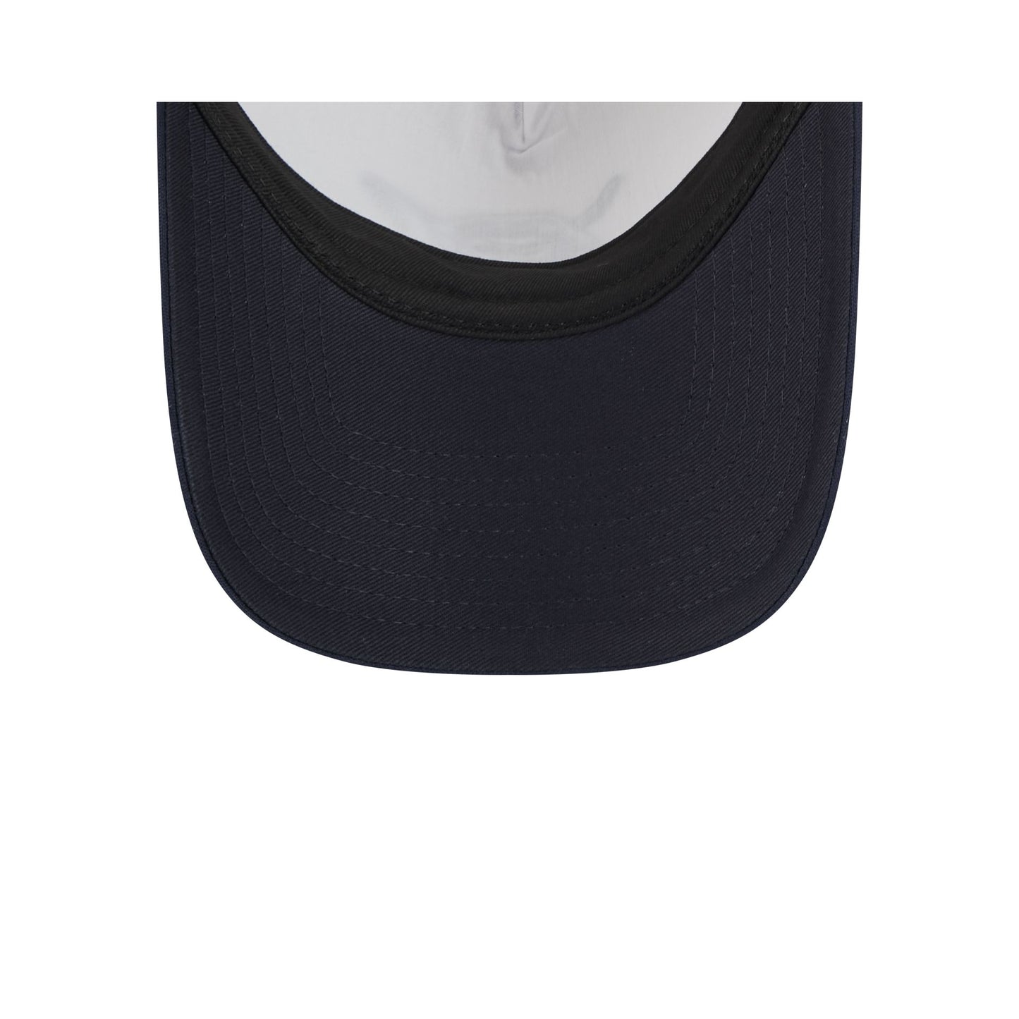 The Pittsburgh Pirates Navy Purple 9FORTY A-Frame Trucker features an embroidered Pirates logo at the front panels with a snapback closure at a mesh rear.