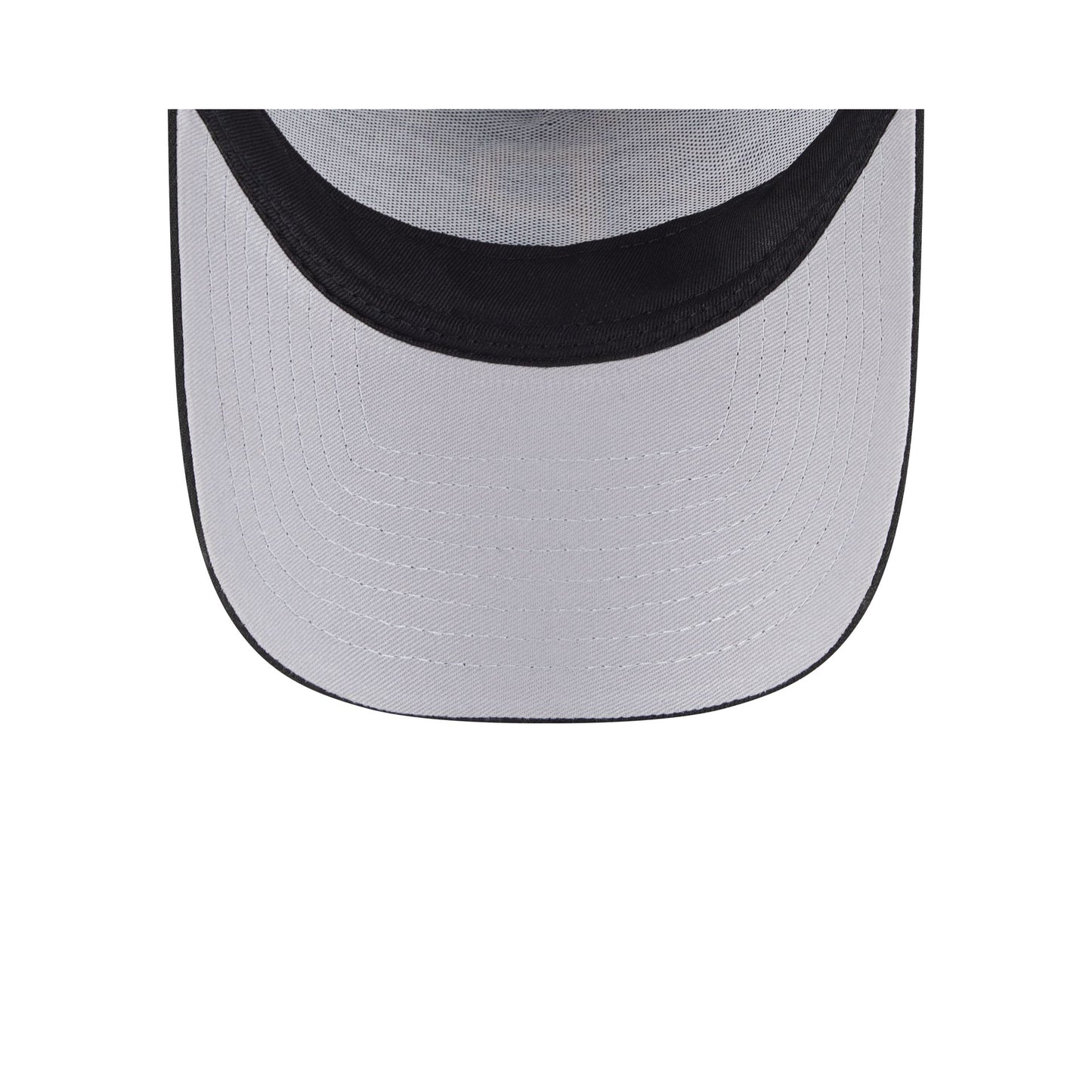 The Pittsburgh Pirates State Stitch 9FORTY A-Frame Trucker features an embroidered Pirates logo and state stitch design at the front panels with a Trucker closure at a mesh rear and a gray undervisor.