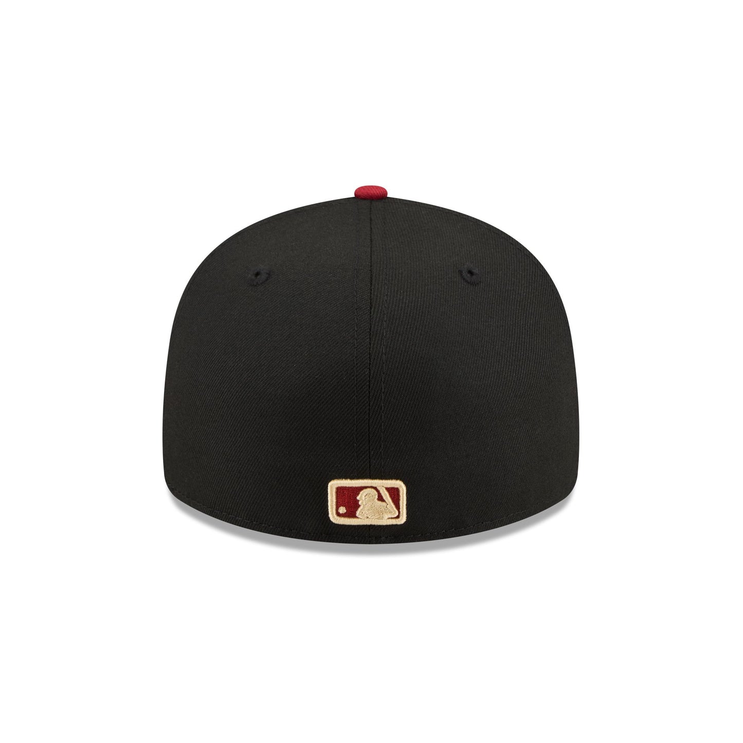 The Pittsburgh Pirates Team Cards 59FIFTY Fitted Cap features an embroidered Pirates logo at the front panels with a team card patch with heart at the right-wear side. Additional details include the MLB Batterman logo at the rear and a green undervisor.