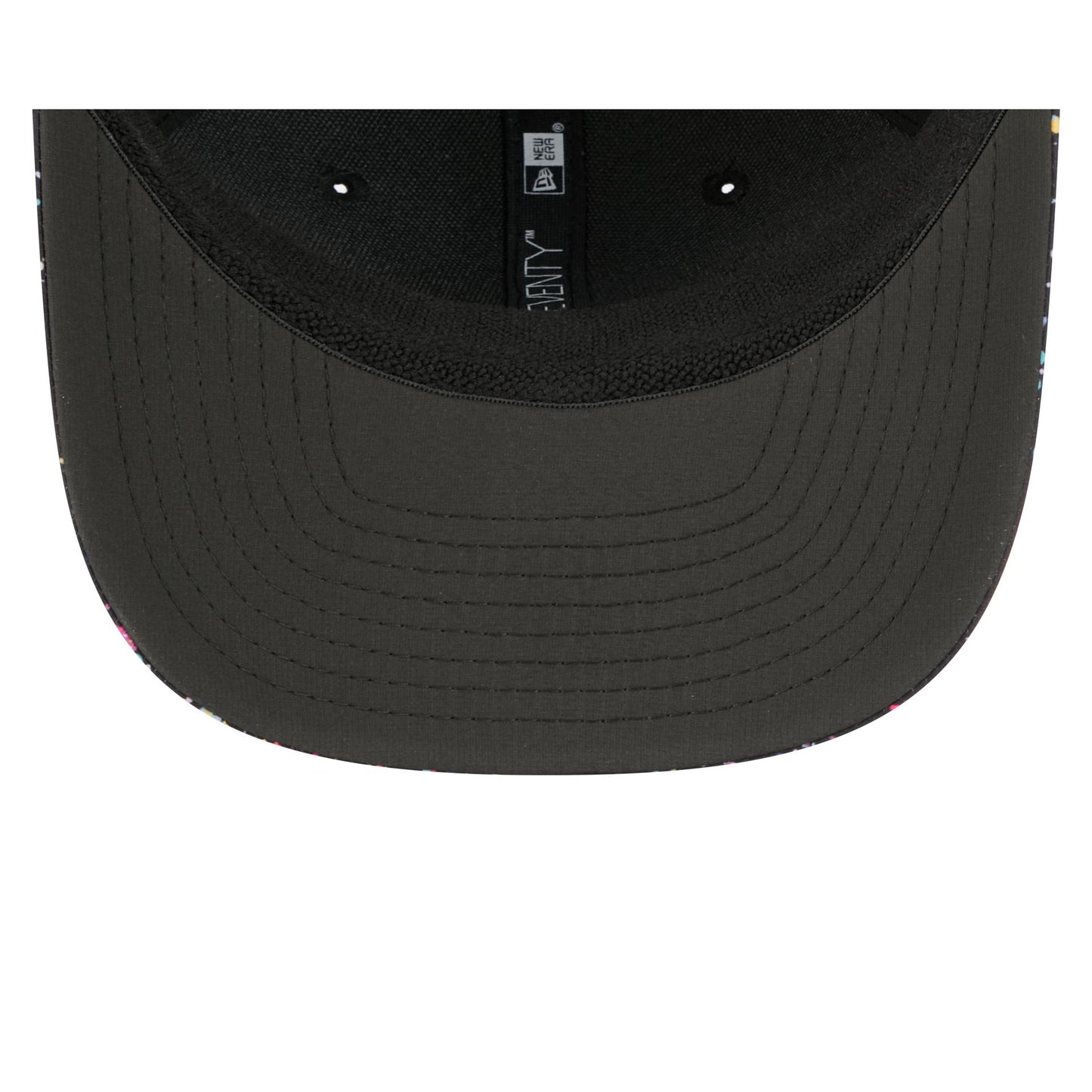 The Pittsburgh Steelers 2025 Crucial Catch 9SEVENTY Trucker features an embroidered Steelers logo at the front paint splatter panels with a woven NFL Shield tag above a snapback closure at the rear. Additional details include a Crucial Catch Intercept Cancer patch at the right-wear side with performance mesh rear panels and a black undervisor.