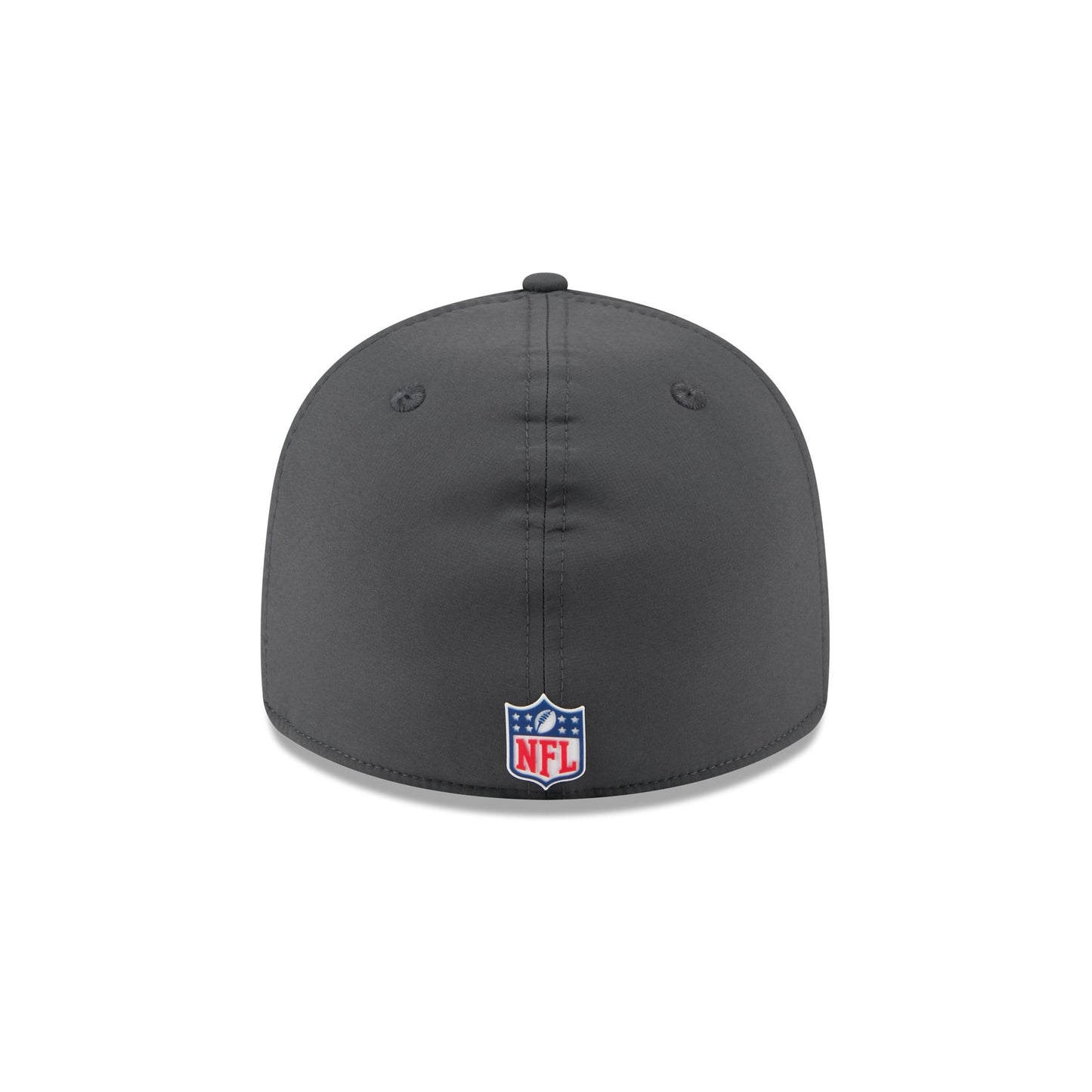 The Pittsburgh Steelers 2025 Sideline Cold Weather Steel Clouds Retro Crown 59FIFTY A-Frame Fitted Cap features a sewn-down silicone Steelers logo patch at the front panels with the Official NFL Shield logo at the rear. The cap has a water-repellent quill tech fabrication throughout, with an insulated crown and quick-dry cushioned sweatband. The undervisor is accented with a silicone transfer in the team’s colors.