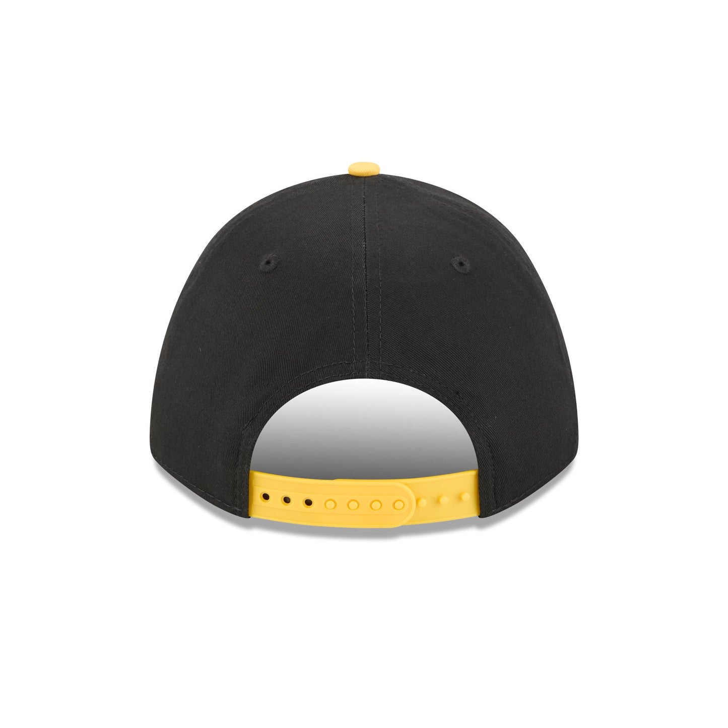 The Pittsburgh Steelers Arch 9FORTY M-Crown A-Frame Snapback features an embroidered Steelers graphic at the front panels with a rope at the visor. Additional details include an adjustable snapback closure at the rear with a gray undervisor.