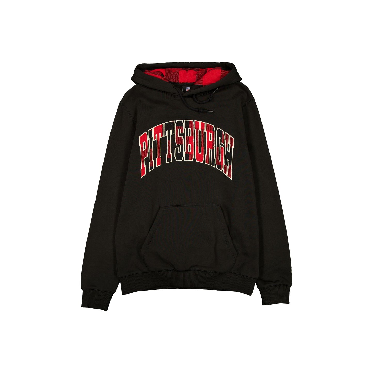 The Pittsburgh Steelers Evergreen Check Hoodie features an embroidered applique Steelers checkered wordmark at the front with a matching interior hood and logo at the rear. Additional details include kangaroo pockets and adjustable drawstrings at the hood.