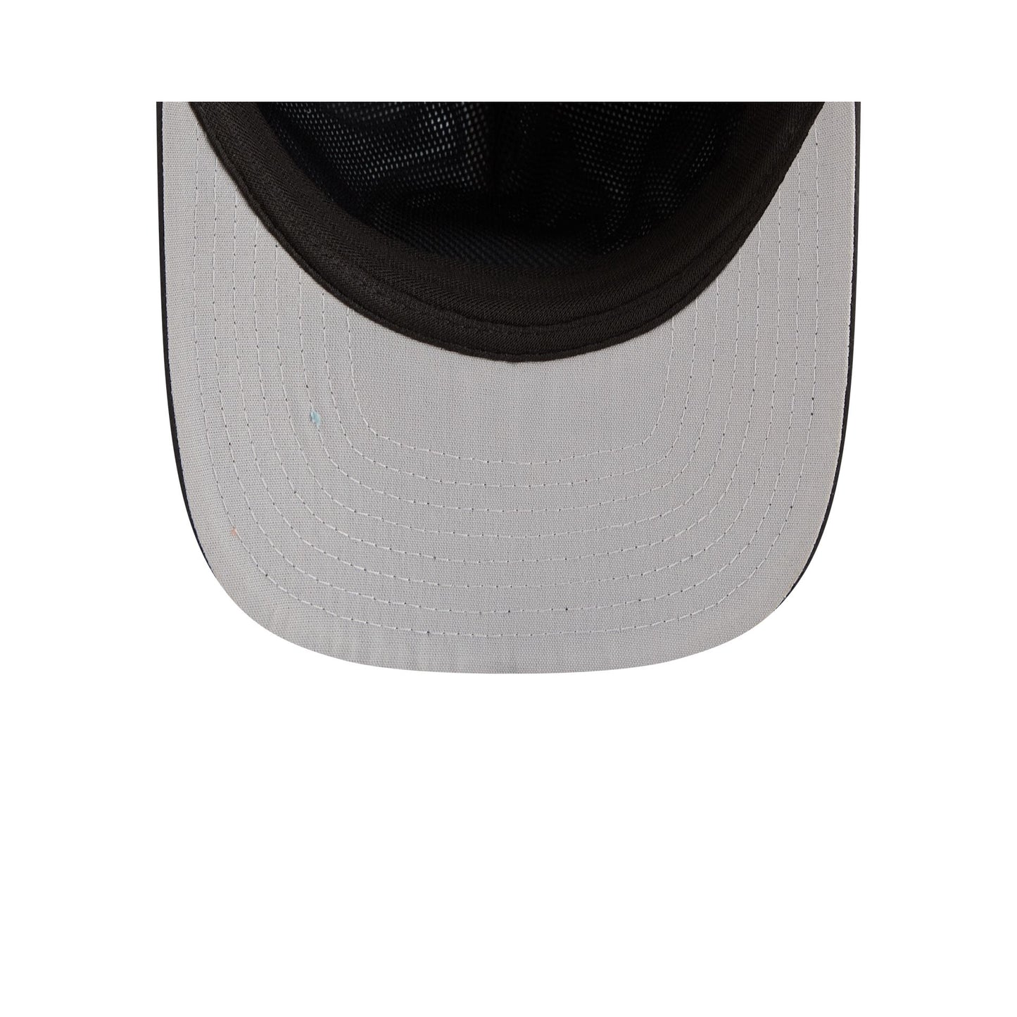 The Pittsburgh Steelers GORE-TEX Black 9FIFTY A-Frame Snapback features an embroidered white Steelers logo at the front panels with a metallic sheen silicone New Era Flag logo and GORE-TEX logo at the left-wear side. Additional details include an adjustable snapback closure at the rear, a gray undervisor, and a polyester fabrication throughout the cap. It is waterproof, breathable, and lightweight.