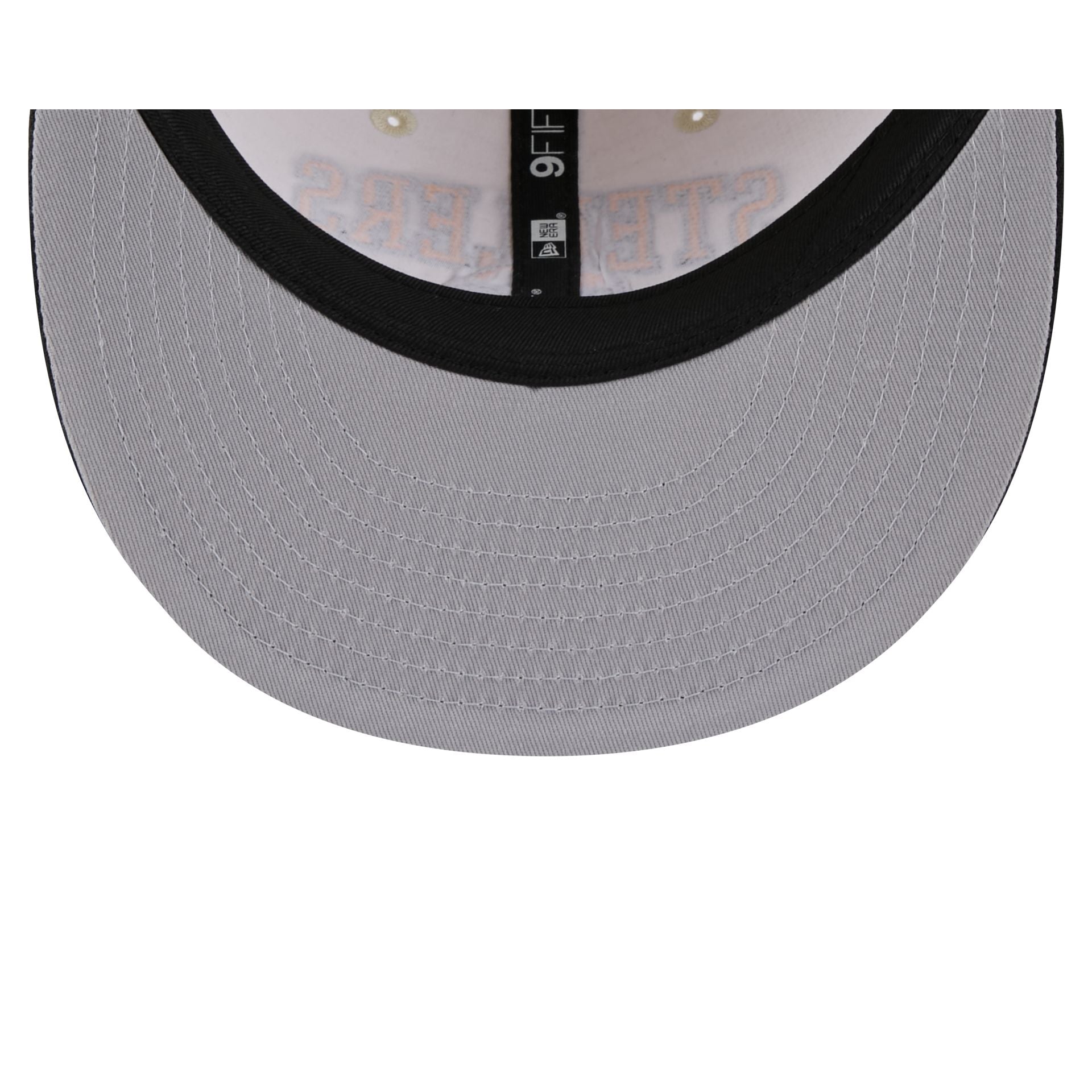 The Pittsburgh Steelers Historic Helmet Retro Crown 9FIFTY Snapback features an embroidered Steelers helmet and wordmark at the front panels with a snapback closure at the rear and a gray undervisor.