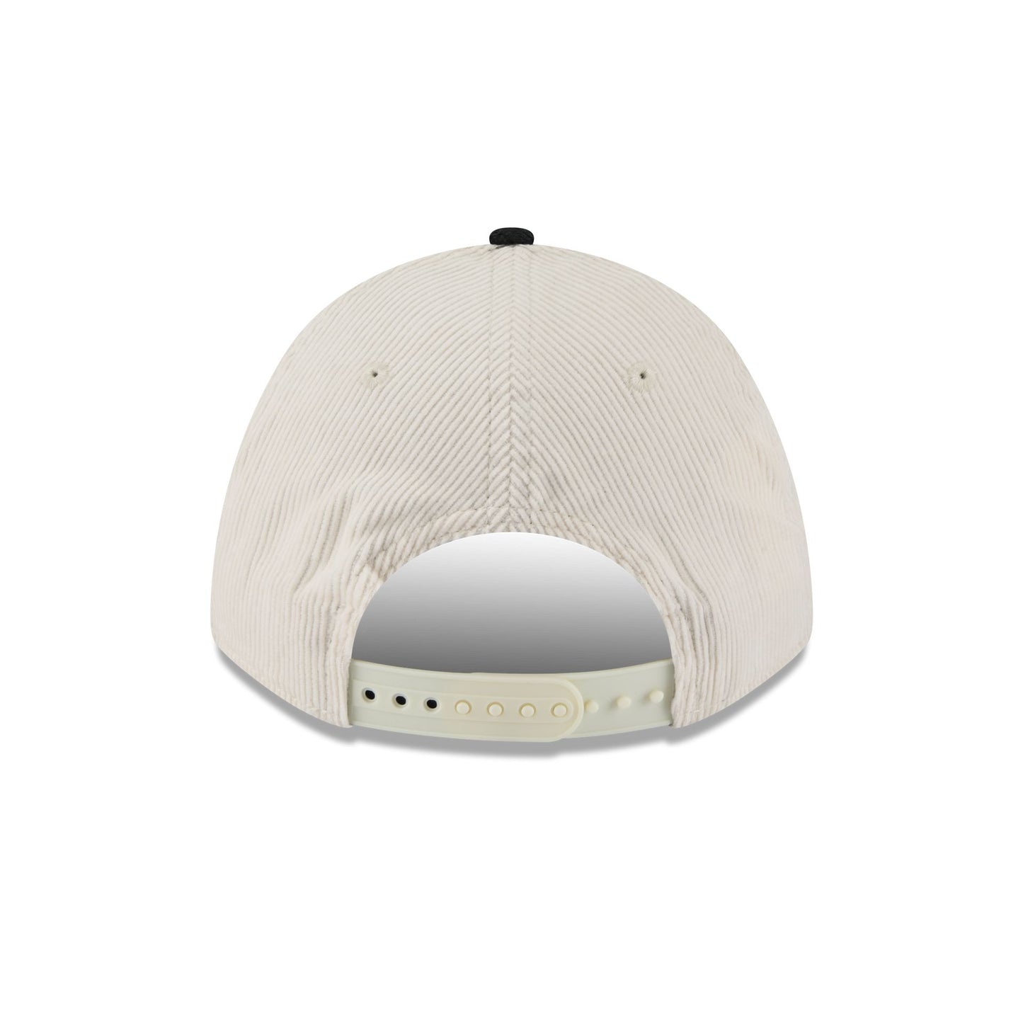 The Pittsburgh Steelers Stacked Corduroy 9FORTY M-Crown A-Frame Snapback features an embroidered Steelers stacked wordmark at the front panels with a logo at the right-wear side. Additional details include a corduroy fabrication throughout, a snapback closure at the rear, and a gray undervisor.