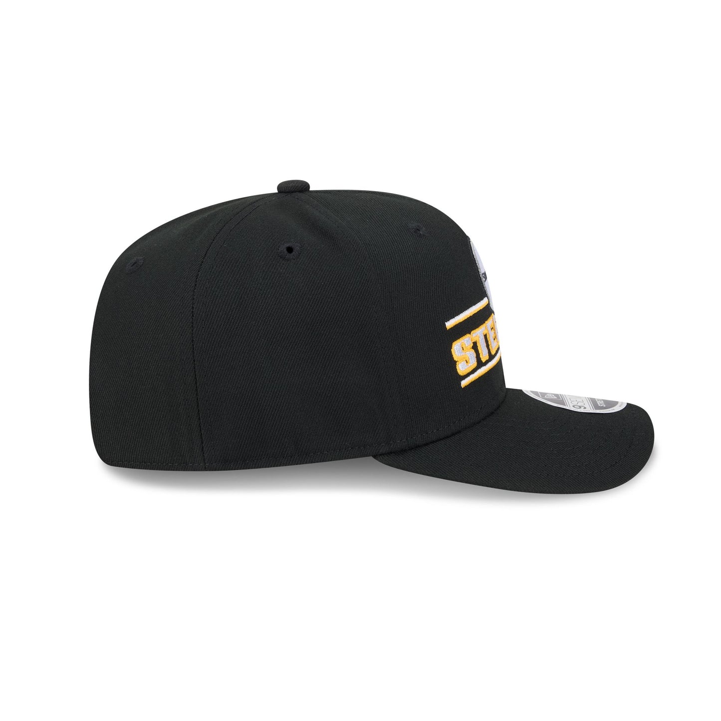 The Pittsburgh Steelers Stated 9SEVENTY Stretch-Snap features an embroidered Steelers graphic a the front panels with an adjustable stretch-snap closure at the rear and a gray undervisor.