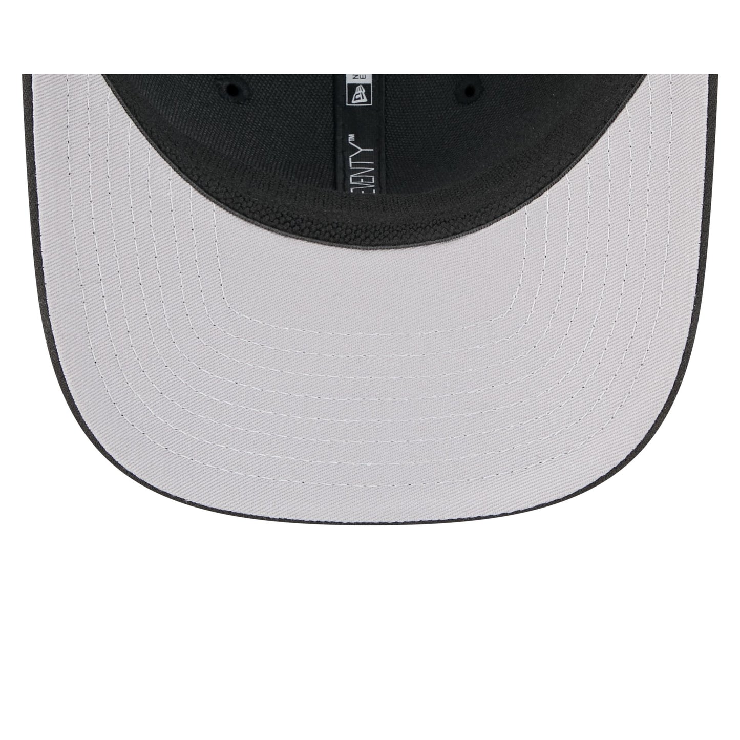 The Pittsburgh Steelers Team 9SEVENTY Trucker features an embroidered Steelers logo at the front panels with a matching NFL Shield logo above an adjustable snapback closure at a mesh rear and a gray undervisor.