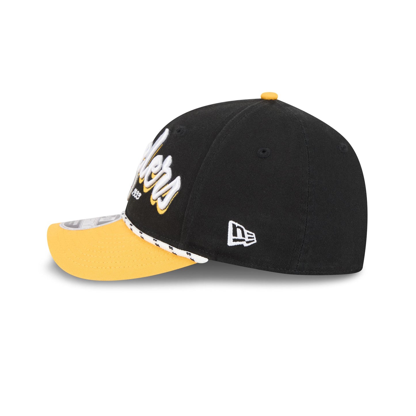The Pittsburgh Steelers Team Loyal 9FORTY M-Crown Snapback features an embroidered Steelers wordmark graphic at the front panels with a rope at the visor. Additional details include an adjustable snapback closure at the rear and a gray undervisor.