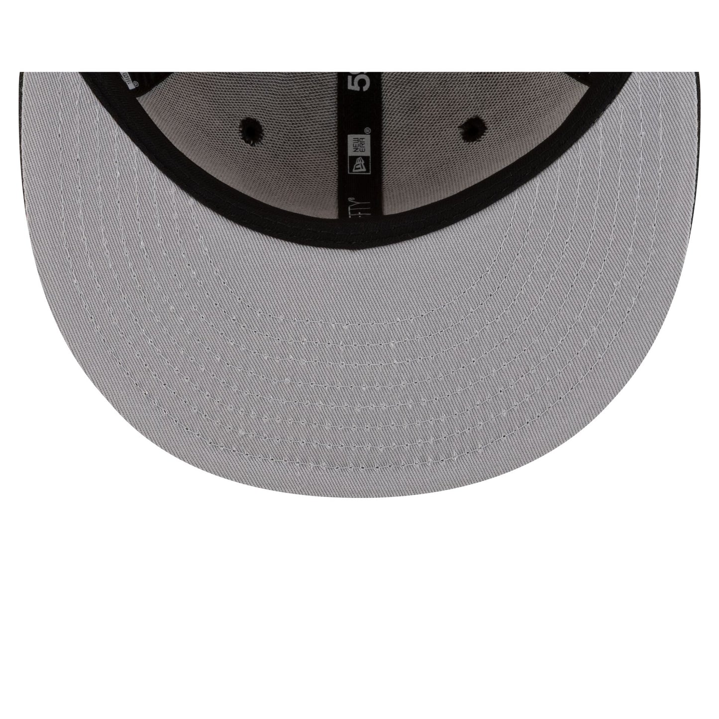The Pittsburgh Steelers Two-Tone Pinwheel 59FIFTY Fitted Cap features an embroidered Steelers Historic logo at the front panels with a matching team wordmark at the rear. Additional details include a black and yellow paneled crown with a 90 Seasons patch at the right-wear side and a gray undervisor.