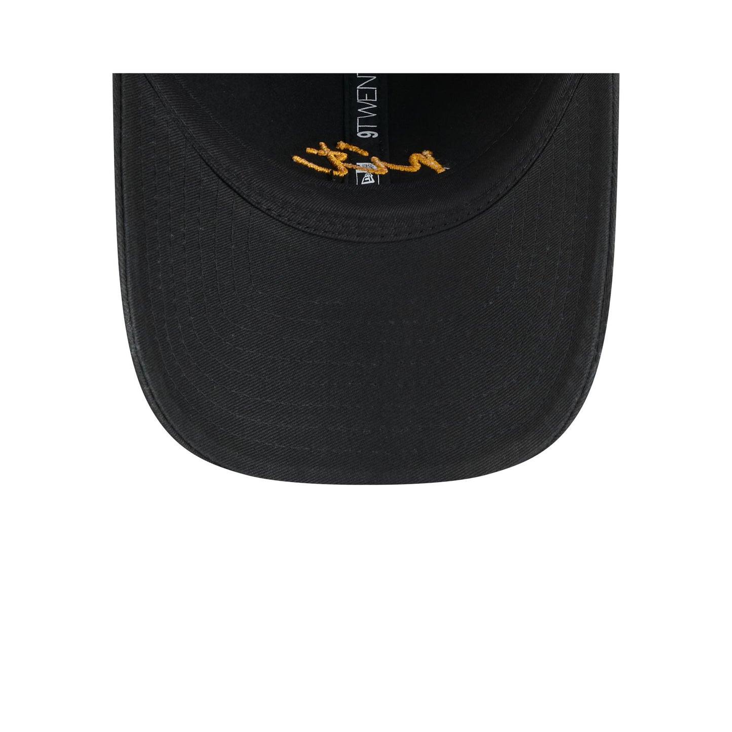 The Pittsburgh Steelers Women's Script 9TWENTY Adjustable Cap features an embroidered Steelers script at the front panels with a team tag on an adjustable D-Ring closure at the rear.