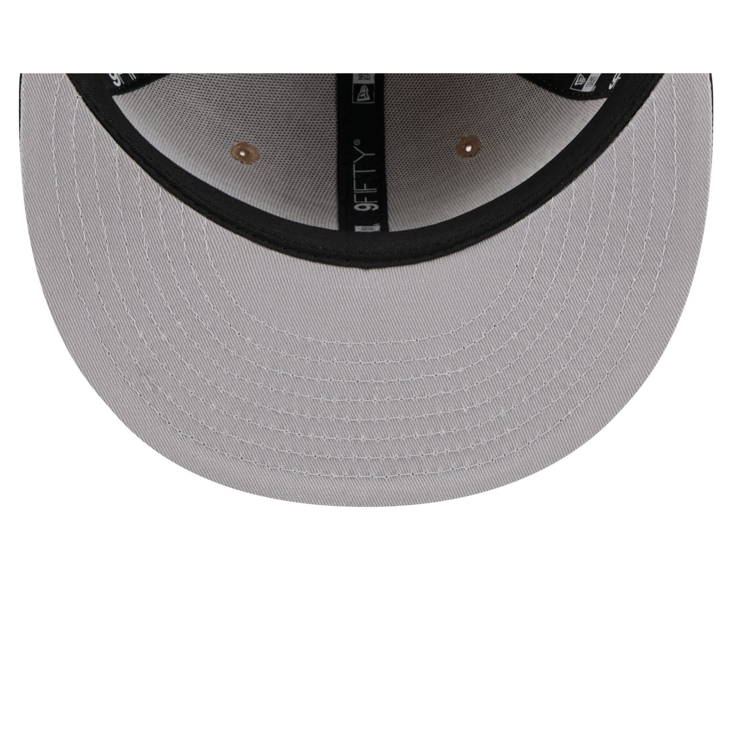 The Portland Trail Blazers 2024 Draft 9FIFTY Snapback features an embroidered Trail Blazers logo and team wordmark at the front panels with the official NBA Logoman above a snapback closure at the rear and a gray undervisor.
