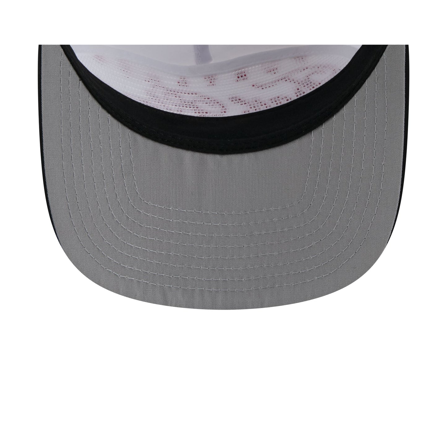 The Portland Trail Blazers 2025 Draft 19TWENTY Adjustable Cap features an embroidered Trail Blazers script wordmark at the front panels with a team logo at the right-wear side. Additional details include a woven silicone NBA Logoman patch above an adjustable buckle closure at the rear and a gray undervisor. The strap features a National Basketball Association gel print wordmark.